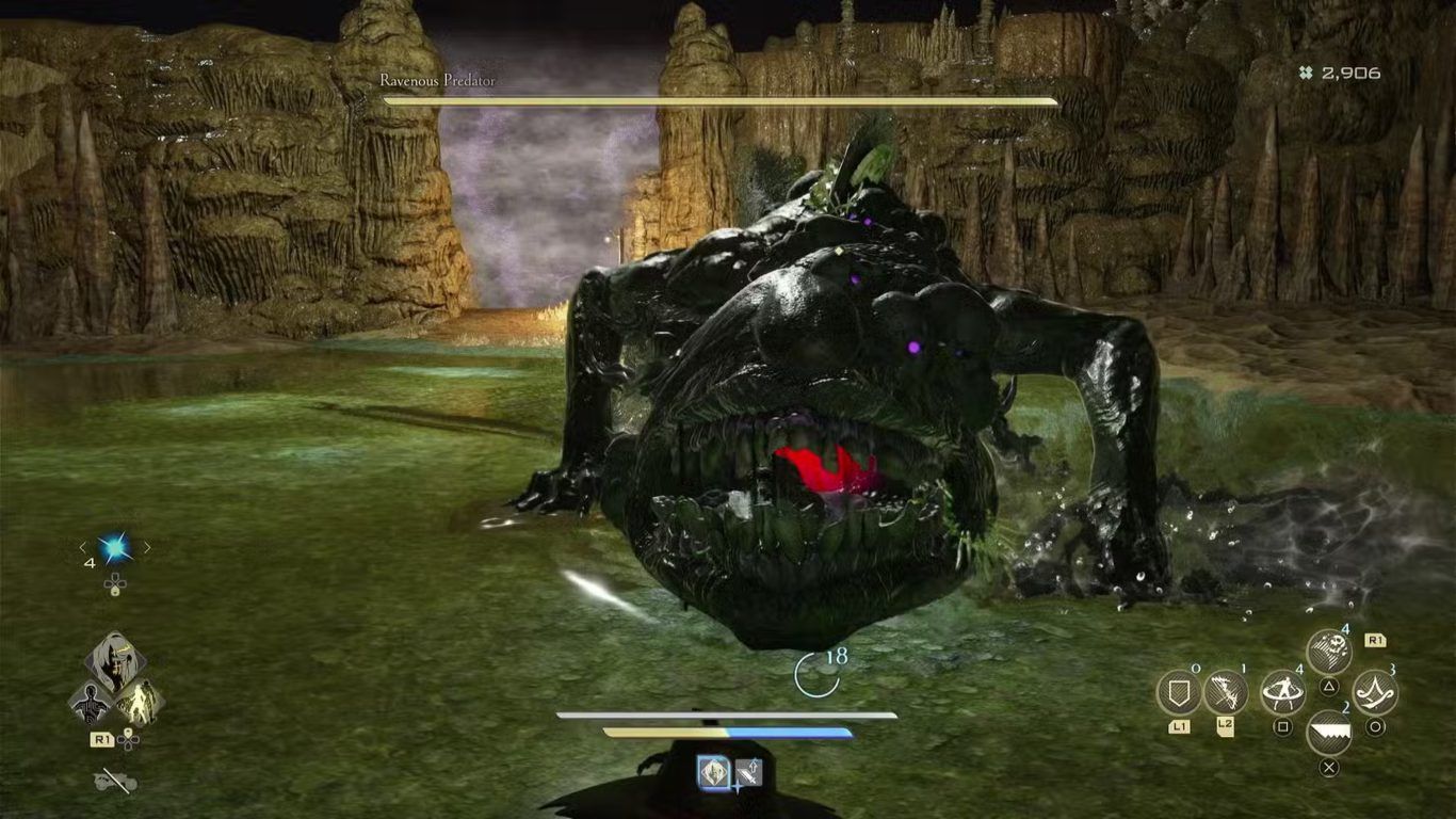 بعد الدخول إلى Limestone Cave بفترة قصيرة يواجه اللاعب أحد الأهداف الأساسية المرتبطة بالمهمة الحالية وهو Ravenous Predator حيث تمثل هذه المواجهة ذروة الجزء الأول من الكهف وترتبط مباشرة بهدف defeat the retainer in the Limestone Cave.