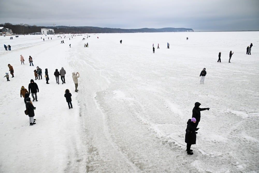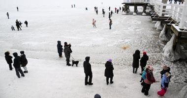 زوار بحر البلطيق المغطى بالجليد في سوبوت