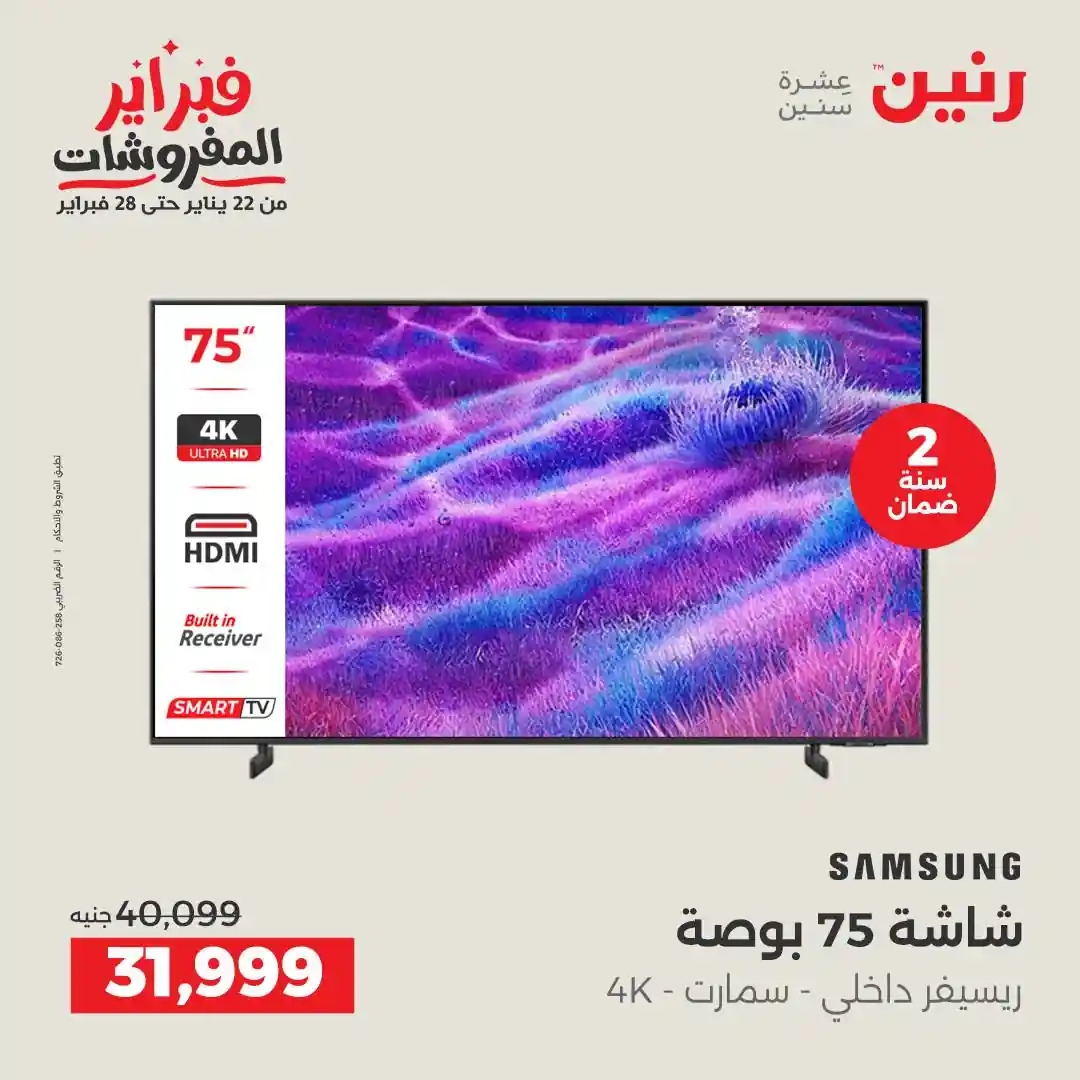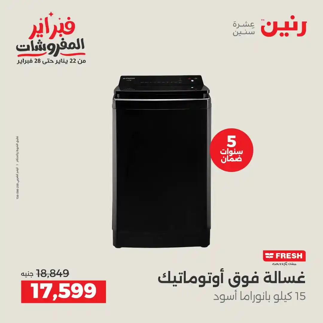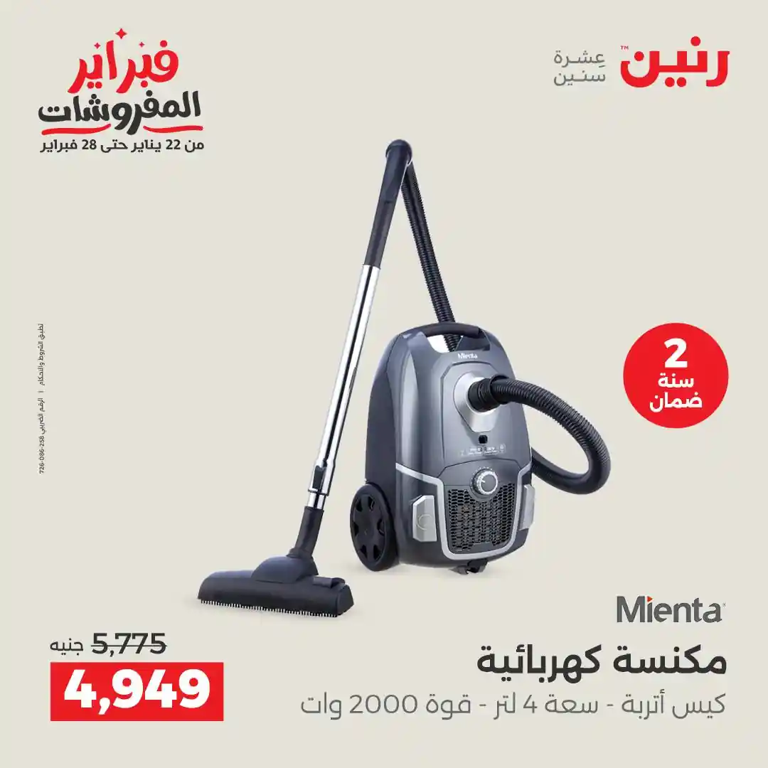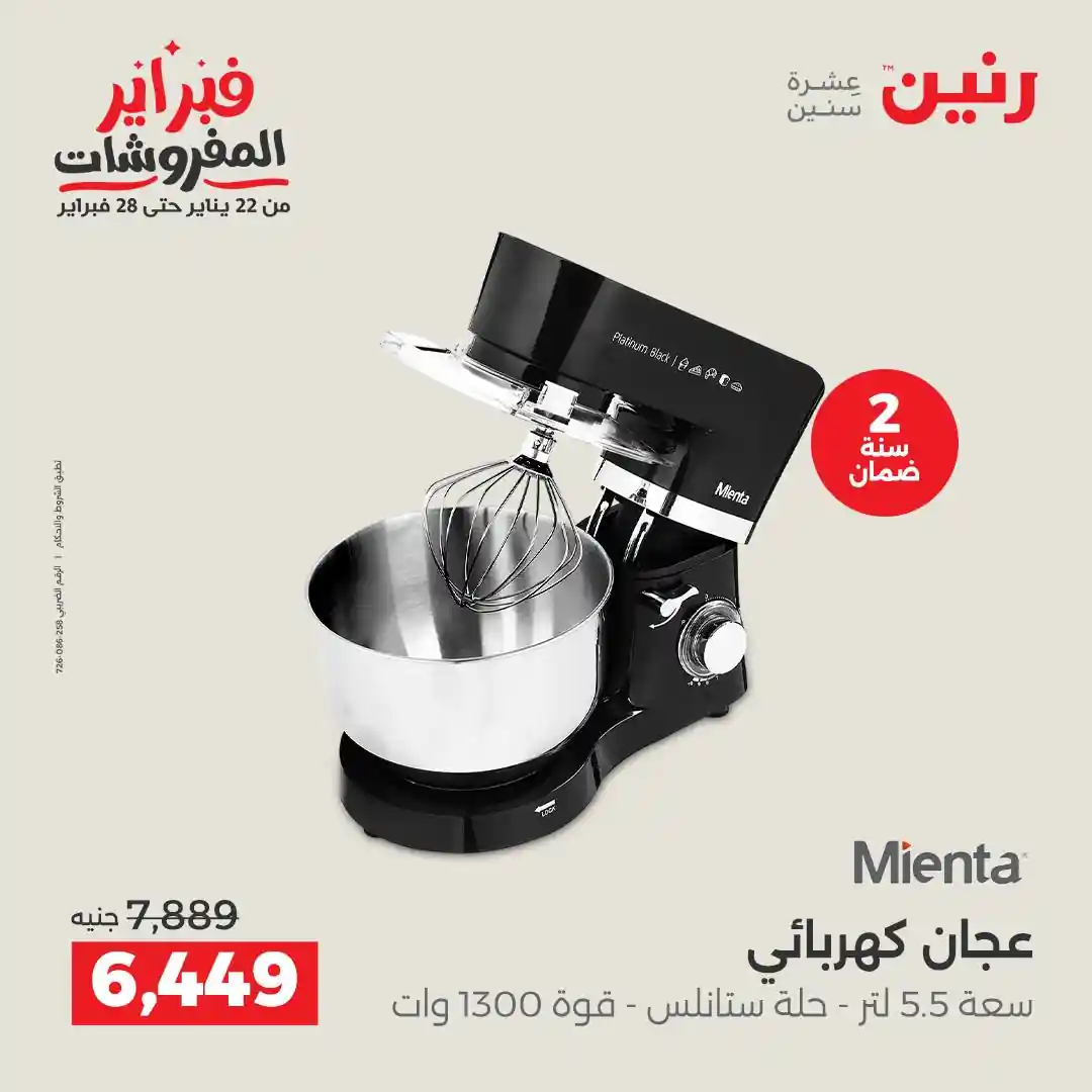 تسرى عروض رنين من يوم الخميس للسبت 12 – 13 – 14 فبراير 2026 للاجهزة الكهربائية بجميع الفروع