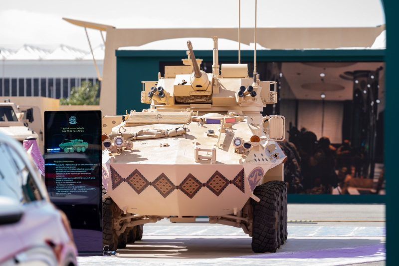 وسلّط التعاون مع وزارة الحرس الوطني الضوء على توظيف النقوش المستلهمة من “الأبواب النجدية” على مركبة دفاعية، لتعبّر عن هوية معرض الدفاع العالمي ومفهوم التكامل الدفاعي، مجسّدًا كيف يمكن للزخارف والرموز التقليدية أن تتحول إلى لغة تصميم حديثة تُبرز الهوية السعودية في فضاءات غير تقليدية.