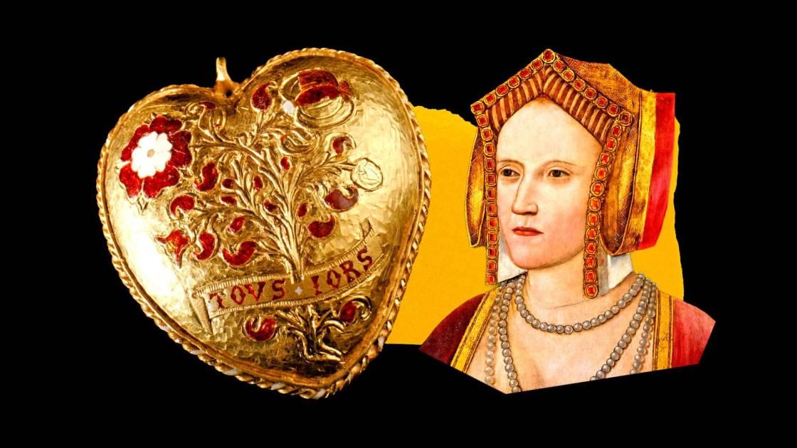 لم يستمر زواج هنري الثامن ملك إنجلترا وكاثرين وحدث الطلاق في عام 1533، لكن قلادة ذهبية يتدلى منها قلب مرتبطة بزواجهما، لا تزال باقية وأصبحت متاحة الآن للعرض بشكل دائم في المتحف البريطاني.