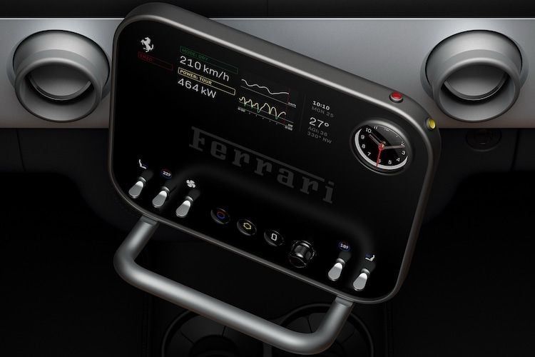 ورغم ذلك، تحتوي فيراري Luce على شاشة لمس بحجم 10 بوصات، لكنها لا تهيمن على التصميم، بل تندمج بسلاسة مع الأزرار والمقابض التقليدية. كما يمكن تحريك الشاشة باستخدام مقبض مخصص.