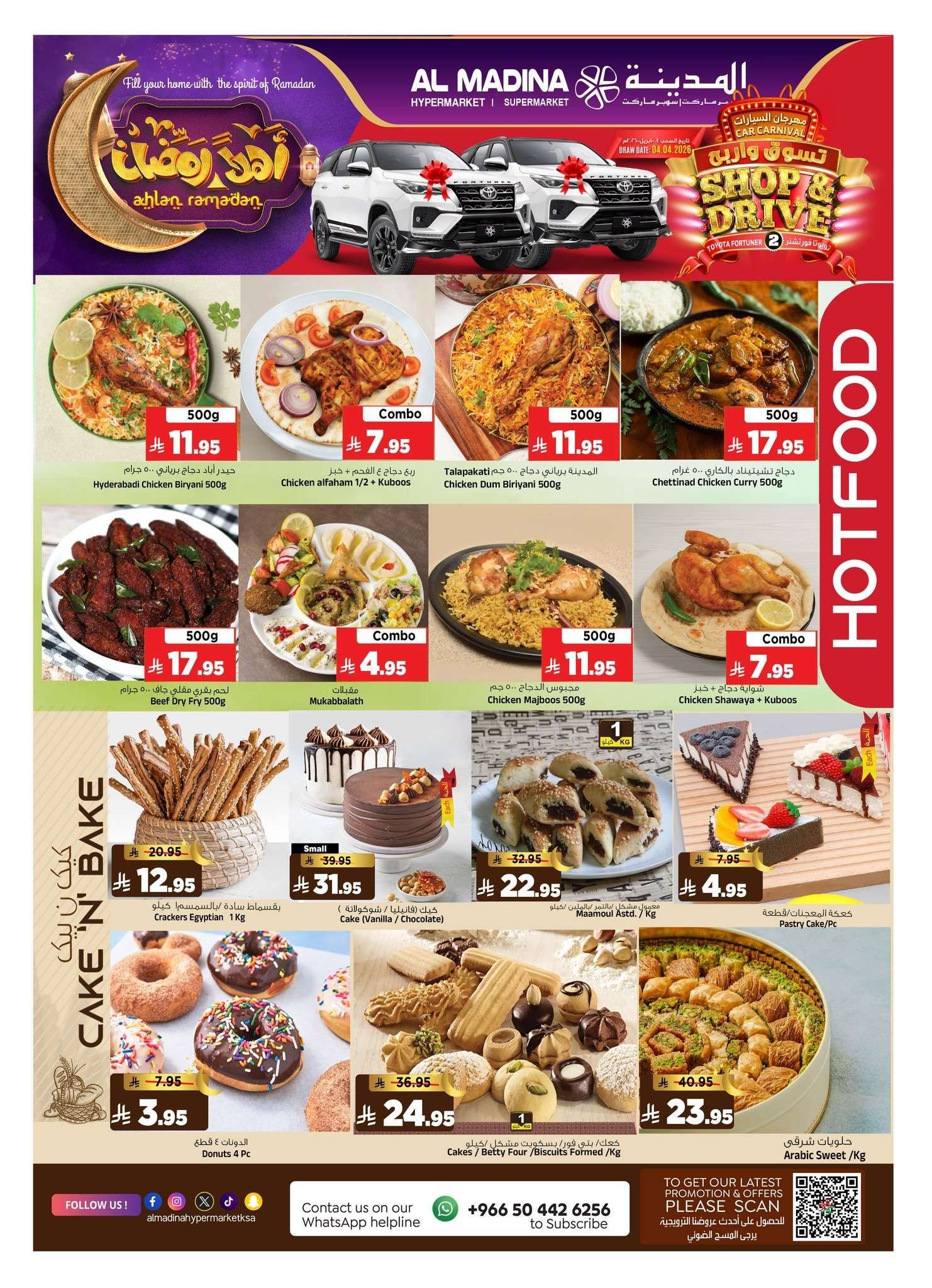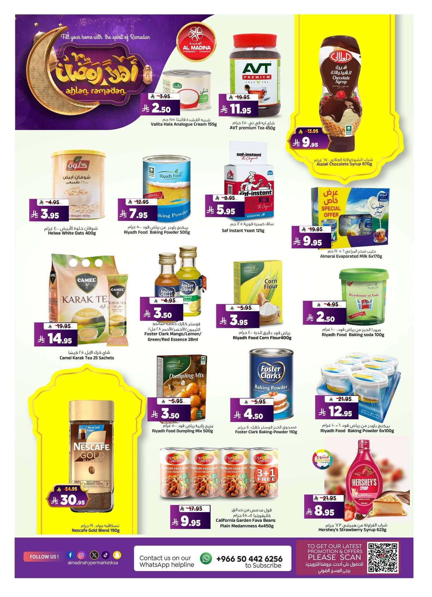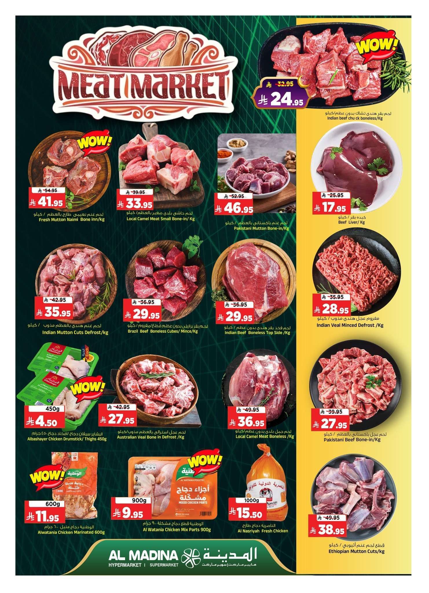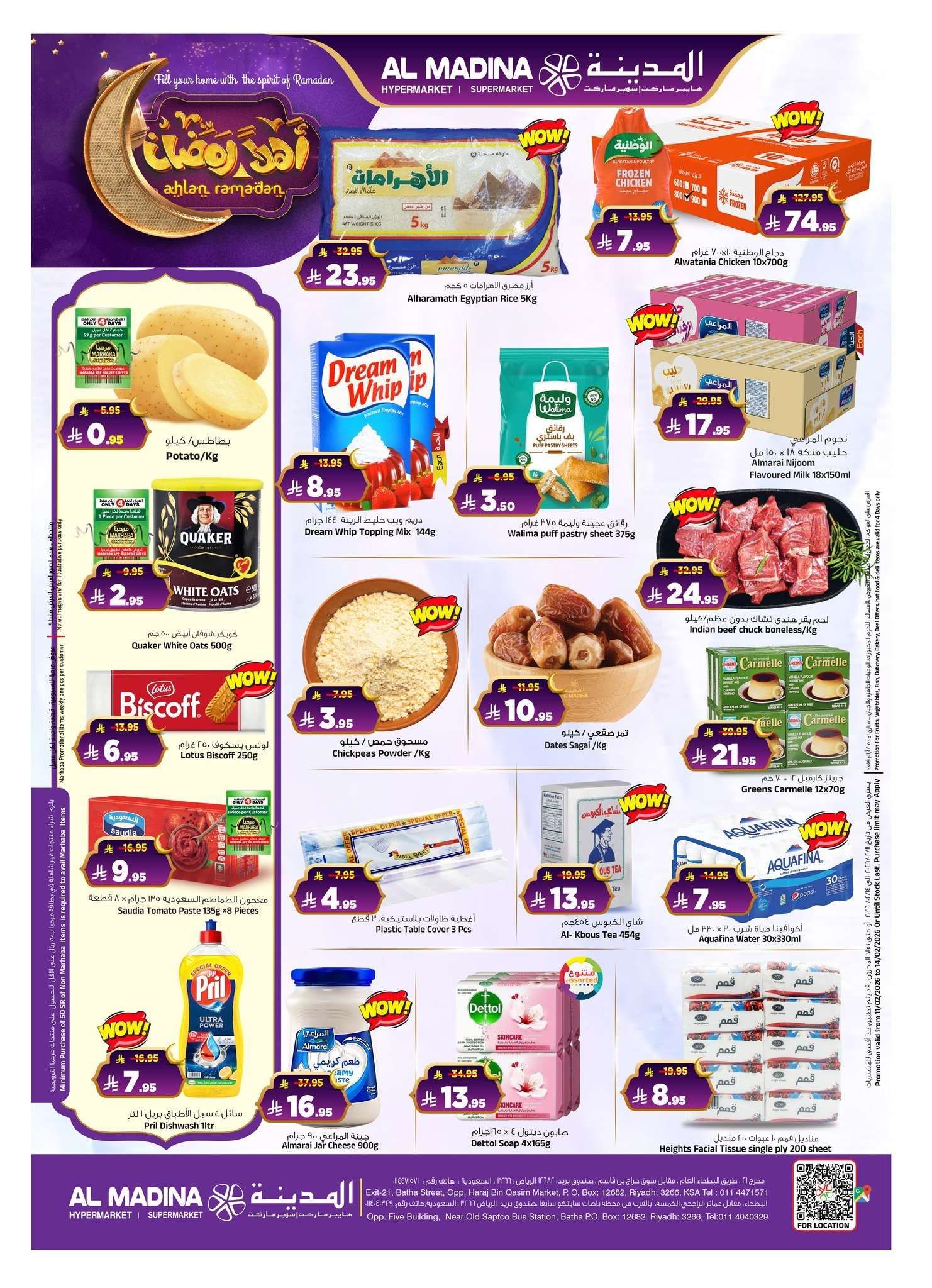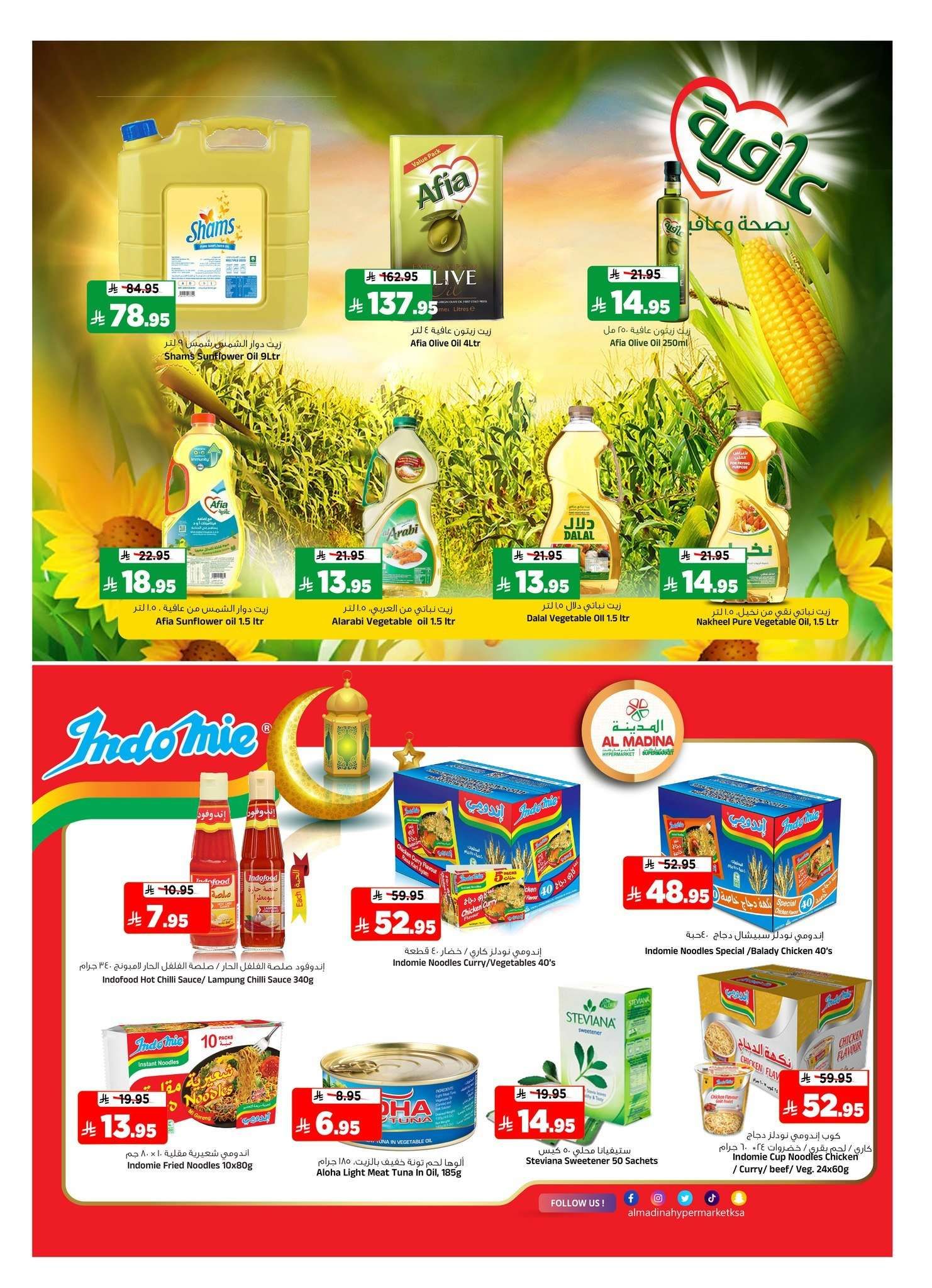 عروض المدينة هايبر ماركت الأربعاء 23 شعبان 1447هـ تشمل المواد الغذائية قطع لحم الحاشي وسمك القاروص والملح الصخري ودقيق الشعير والعدس البني والمكرونة اللولبية وصلصة الخردل والفاكهة المجففة