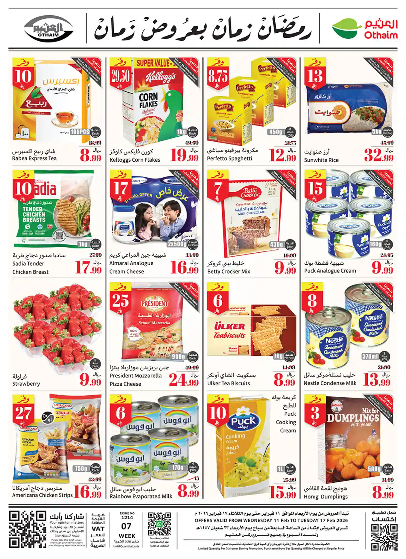 عروض نت تقدم لكم احدث عروض ركن العثيم السعودية الجديدة فى صفحة واحدة – العروض الاسبوعية من ركن العثيم هايبر ماركت – و ذلك من 11 فبراير حتى 17 فبراير 2026 او حتى نفاذ الكمية من ركن العثيم السعودية بجميع الفروع.