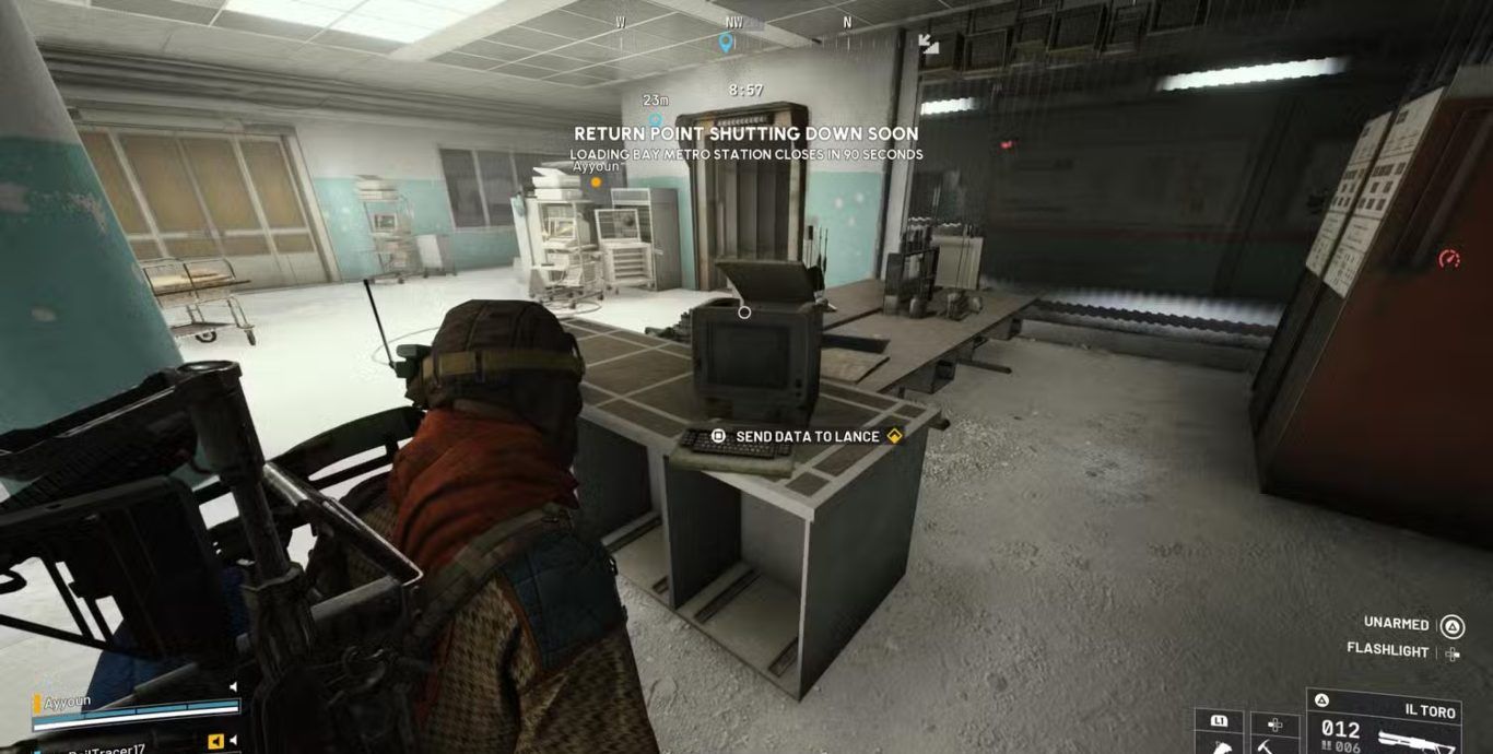 أثناء التقدم إلى داخل المبنى سيلاحظ اللاعب وجود جهاز كمبيوتر آخر يقع على الجهة اليمنى من المسار الرئيسي حيث يعد هذا الجهاز جزءا أساسيا من تسلسل أهداف المهمة.