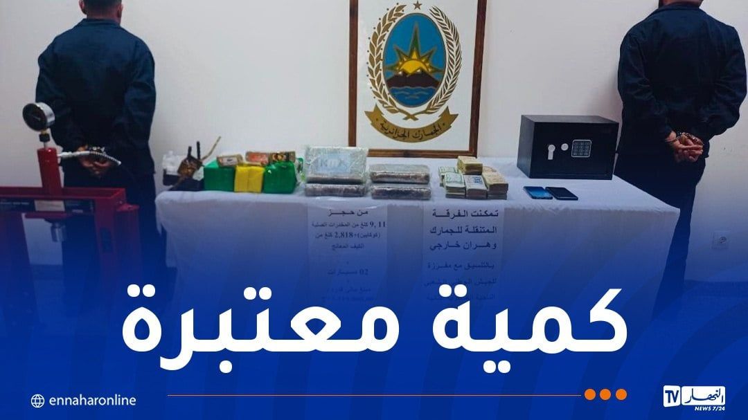 وأسفرت العملية، عن حجز 9,11 كلغ من كوكايين و 2,818 من الكيف المعالج. مع ضبط مبلغ مالي قدره .319.000,00 دينار وحجز سيارتين سياحيتين .