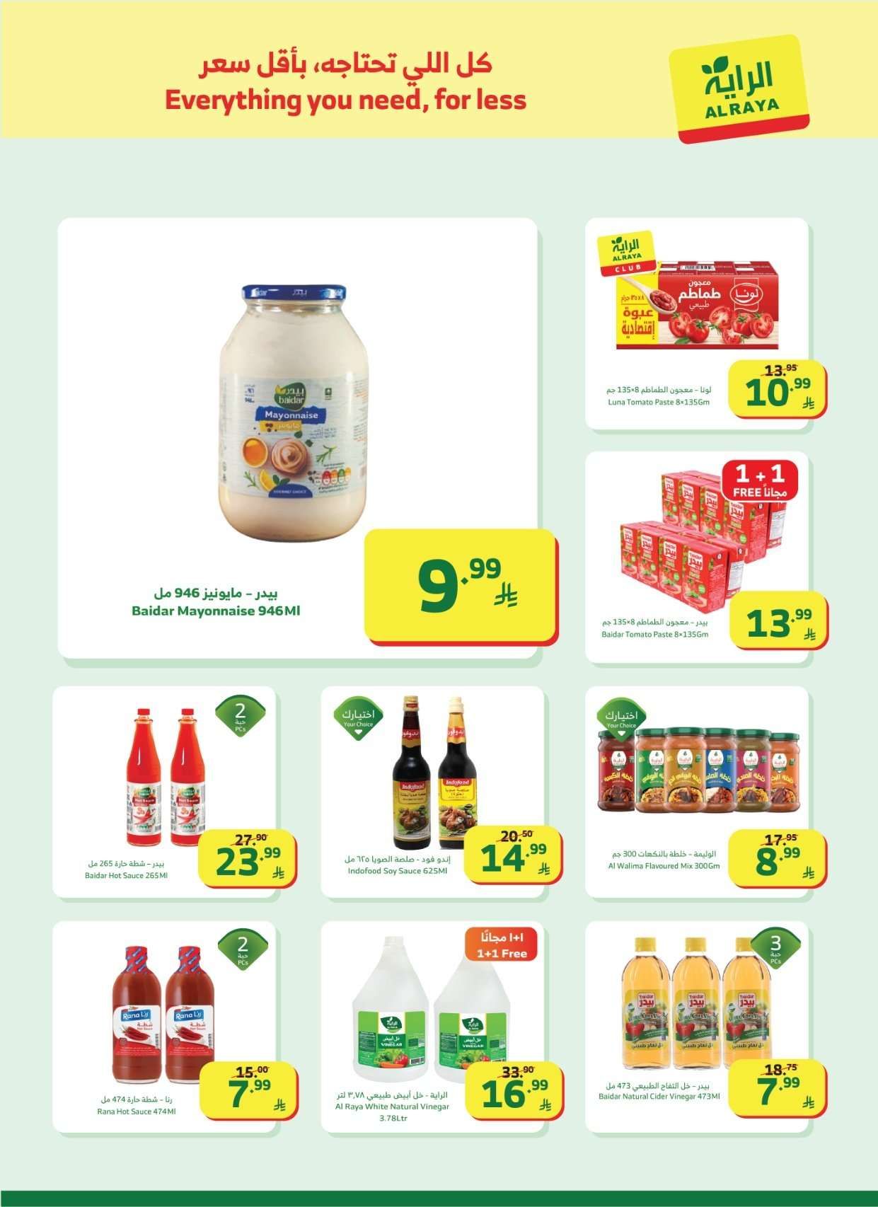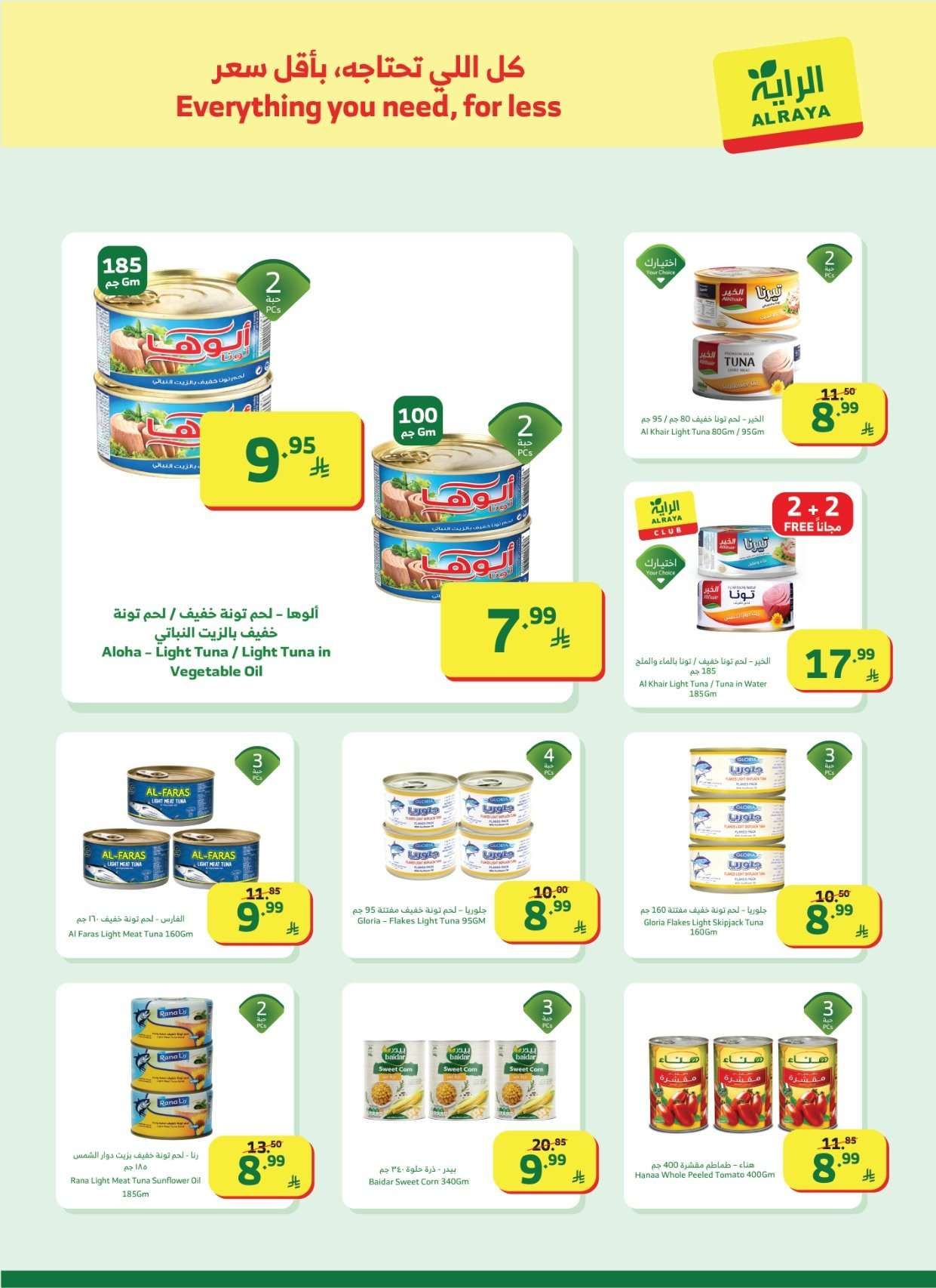 عروض أسواق الراية جدة الأربعاء 23 شعبان 1447هـ تشمل المنتجات الغذائية التونة المعلبة الأرز المصري المربى رقائق الذرة الكيوي البرتقال التفاح الدجاج المبرد الجبن الأبيض الزعتر والبهارات واللحم البقري المفروم والعدس