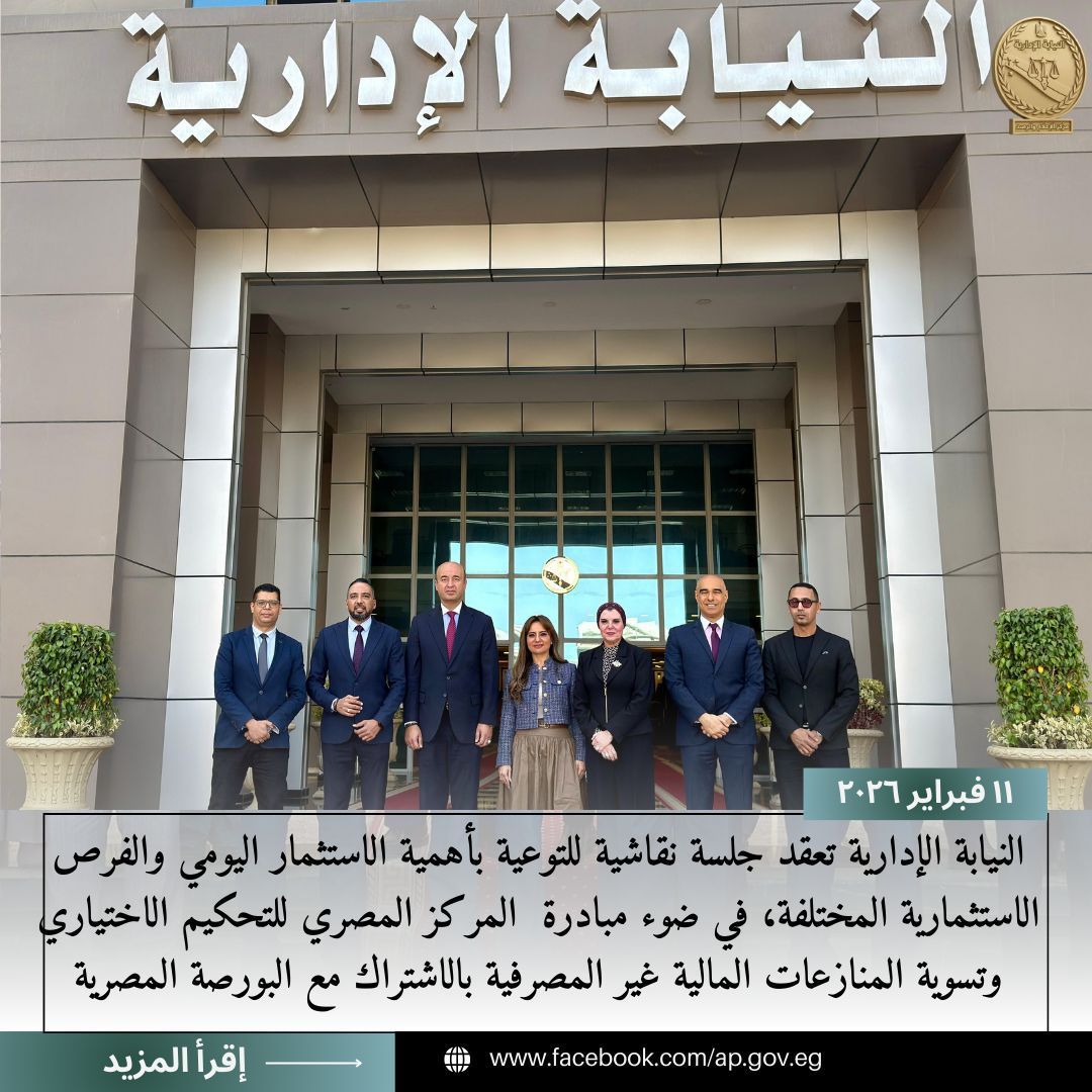 الأربعاء، 11 فبراير 2026 02:44 منظّمت وحدة شؤون المرأة وحقوق الإنسان وذوي الإعاقة بالنيابة الإدارية، برئاسة المستشارة بريهان محسن، جلسة نقاشية بعنوان: «استثمارك اليومي… قهوة ولا سهم؟»، اليوم الأربعاء 11 فبراير 2026، بمقر مجمع النيابات الإدارية بالقاهرة الجديدة، وذلك تحت رعاية المستشار محمد الشناوي رئيس هيئة النيابة الإدارية.