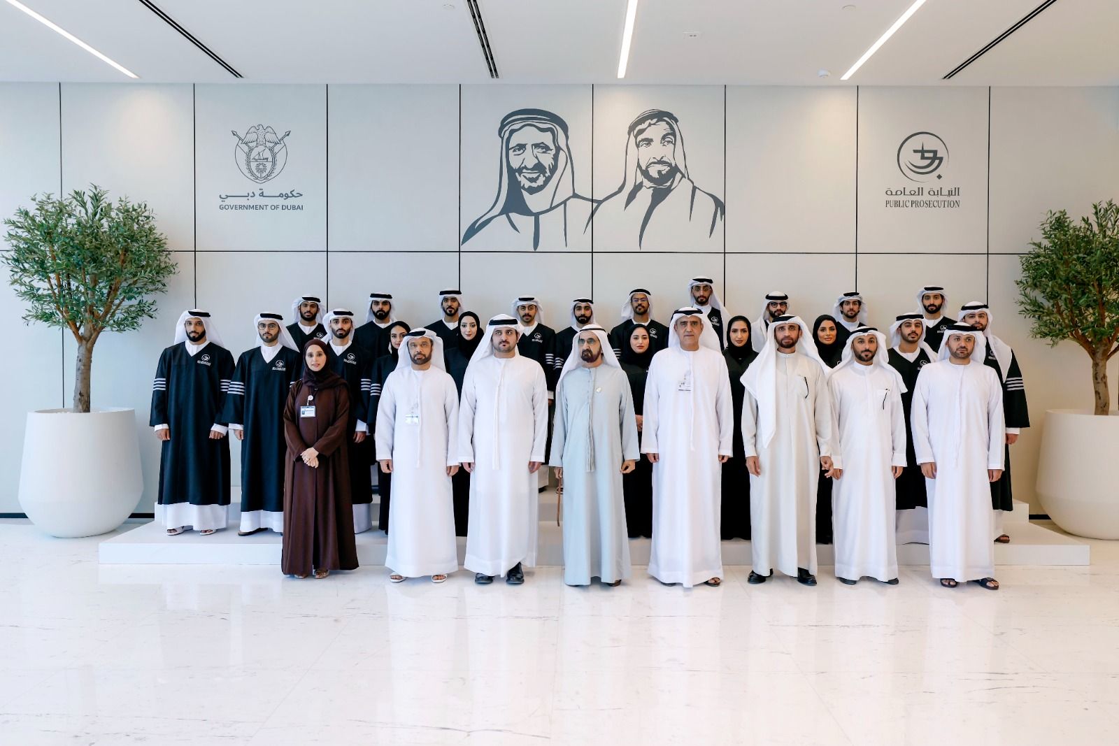 وتمنّى صاحب السموّ الشيخ محمد بن راشد آل مكتوم لأعضاء النيابة الجدد التوفيق في أداء مهامهم، والاضطلاع برسالتهم على الوجه الأكمل، لما لدورهم من أثر بالغ في إعلاء كلمة القانون وترسيخ سيادته، مستندين إلى الأمانة والشعور بالمسؤولية تجاه المجتمع وأفراده كافة، وأن يكون تحقيق العدالة هو غايتهم العليا التي يسعون إلى تحقيقها، بما يحفظ على المجتمع أمنه ويرسّخ مقومات تقدمه وازدهاره.