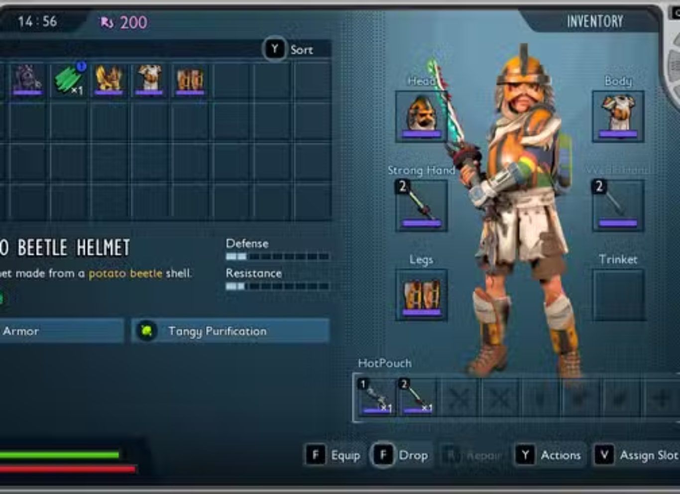 إلى جانب الطفرات يلعب العتاد دورا أساسيا في التعامل مع Tang Buildup حيث يوفر Potato Beetle armor set دعما مباشرا ضد هذا التأثير بفضل perk خاص يعرف باسم Tangy Purification.