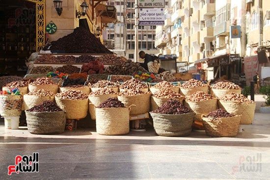 وفى وسط السوق يتساءل المواطنون عن أسعار البلح وأصنافه المفيدة للصائم فى شهر رمضان، وبين هذه المحلات وجدنا رجل متقدم فى السن وكان اسمه مصطفى أحمد محمد، وهو ينسق البلح ويضعه كل نوع فى مكانه حتى ظهر البلح فى المحل بشكل متناسق جذاب.