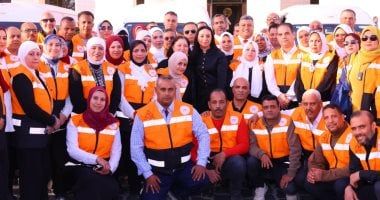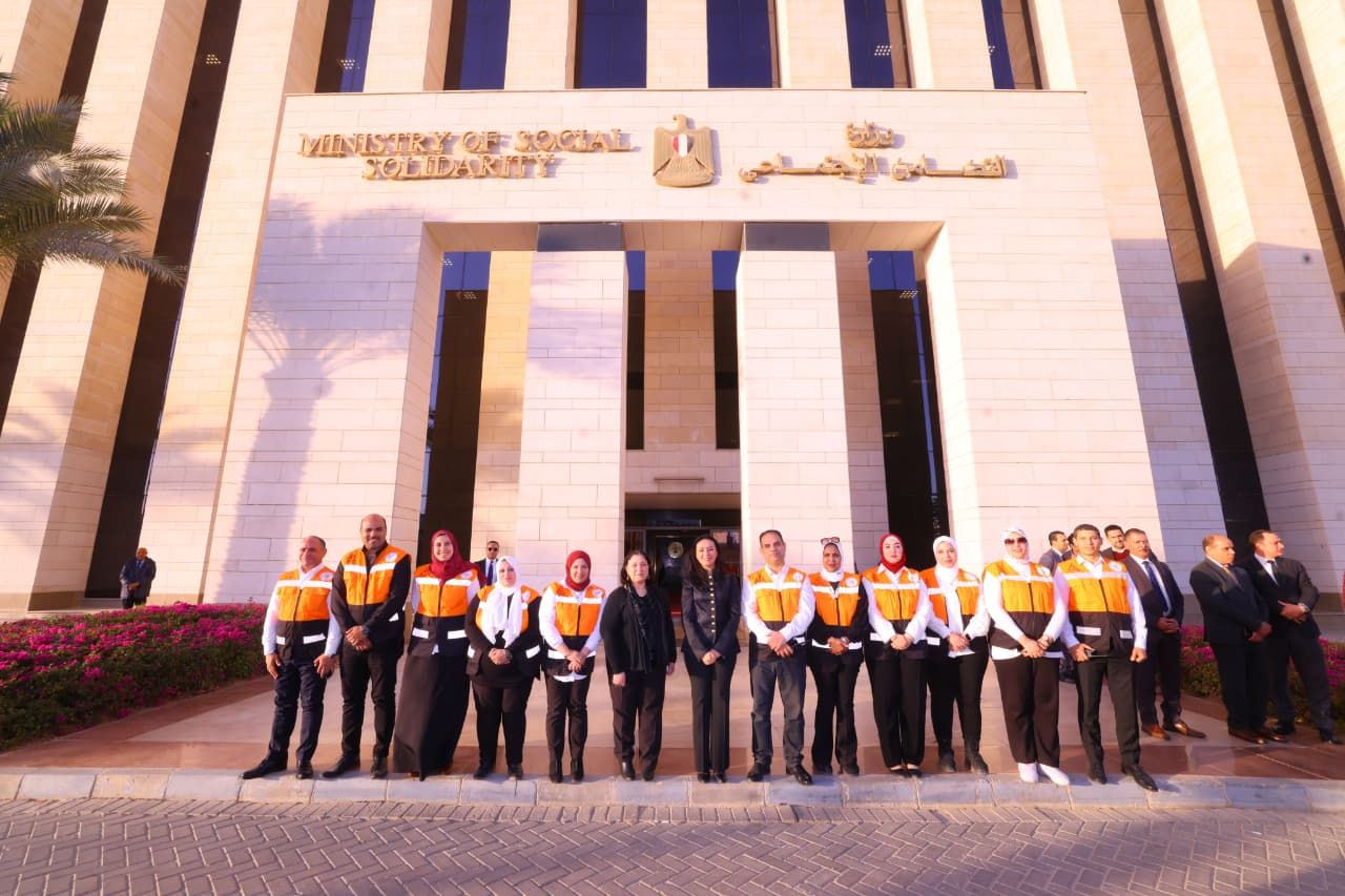 وزيرة التضامن تشهد اصطفاف فرق التدخل السريع والهلال الأحمر المصري