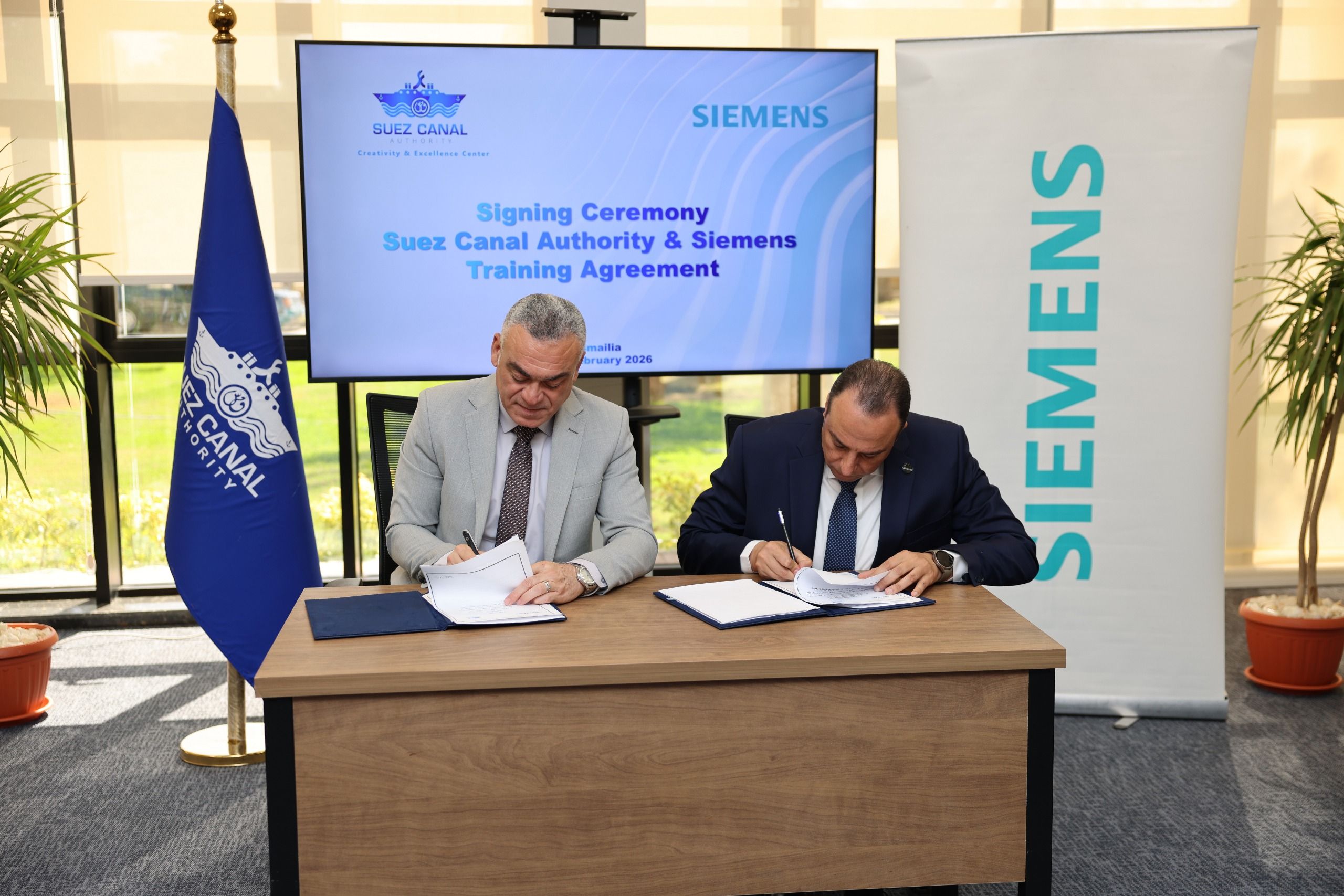 اتفاقية تعاون مشتركوعلى هامش اللقاء وقع الجانبان اتفاقية للتعاون المشترك بين هيئة قناة السويس وشركة سيمنس للصناعات بشأن اعتماد معمل "سيمنس"بمركز الإبداع والتميز التابع للهيئة كمعمل مُعتمد لمنح شهادات تدريبية لبرامج ومنتجات شركة "سيمنس" لتأهيل الأطقم الفنية من داخل الهيئة وخارجها.