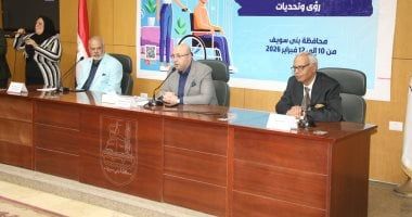 الخميس، 12 فبراير 2026 02:18 مشهد الدكتور محمد هاني غنيم محافظ بني سويف،ختام فعاليات الدورة الـ14 من مؤتمر التمكين الثقافي لذوي الاحتياجات الخاصة، والذي تم تنظيمه بالتعاون بين وزارة الثقافة ممثلة في الهيئة العامة لقصور الثقافة، ومحافظة بني سويف"إدارة شؤون ذوي الإعاقة بديوان عام المحافظة، تحت إشراف الإدارة العامة للتمكين الثقافي لذوي الاحتياجات الخاصة بهيئة قصور الثقافة، واستضافتها المحافظة في الفترة من 10 إلى 12 فبراير الجاري، تحت عنوان"الذكاء الاصطناعي والتمكين الثقافي لذوي الاحتياجات الخاصة..رؤى وتحديات"..