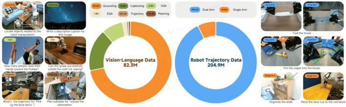 يستخدم النموذج تصميماً خاصاً يقسم العمل بين عقلك للتفكير وجزء منفصل للتحكم في الحركة من خلال البناء على نموذج اللغة Qwen3. وقد قام الفريق بتدريب هذا النموذج باستخدام كمية هائلة من البيانات تتضمن حوالي 200 مليون حركة روبوت مميزة وأكثر من 80 مليون صورة عامة وأمثلة نصية. ويسمح هذا التدريب المكثف للروبوت بفهم التعليمات المعقدة والتعرف على الأشياء في العالم الحقيقي مع التخطيط لأفعاله المادية بدقة عالية.