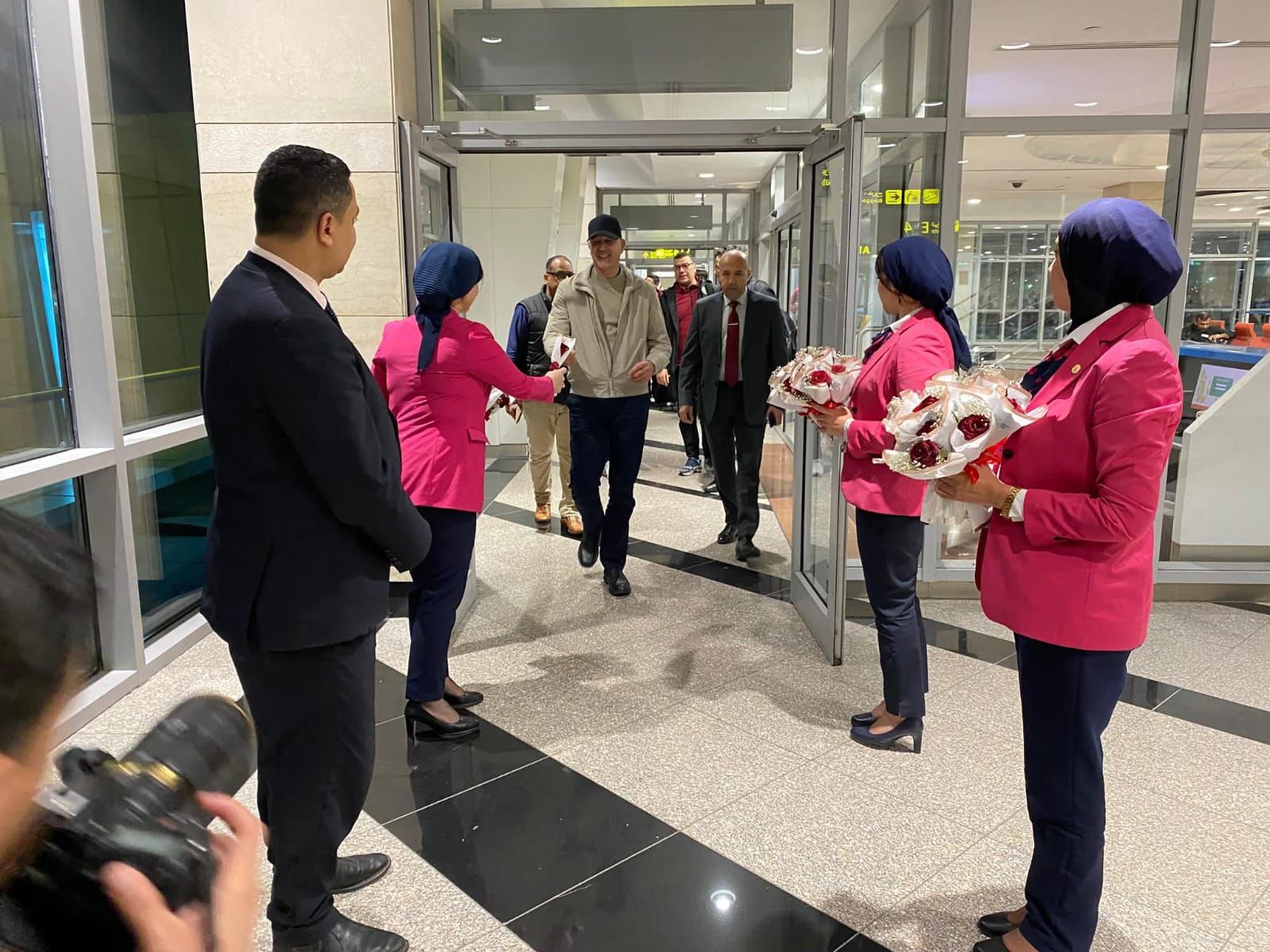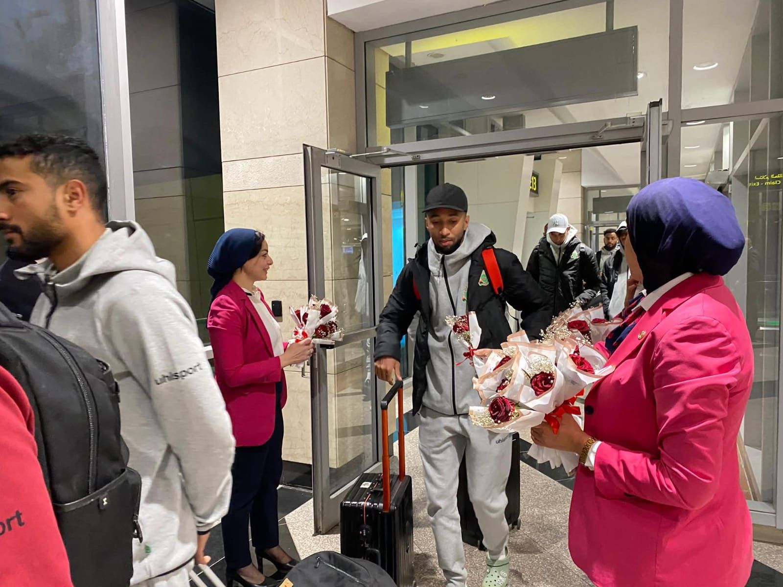 استقبال بعثة الجيش الملكي المغربي بالورود بعد الوصول للقاهرة