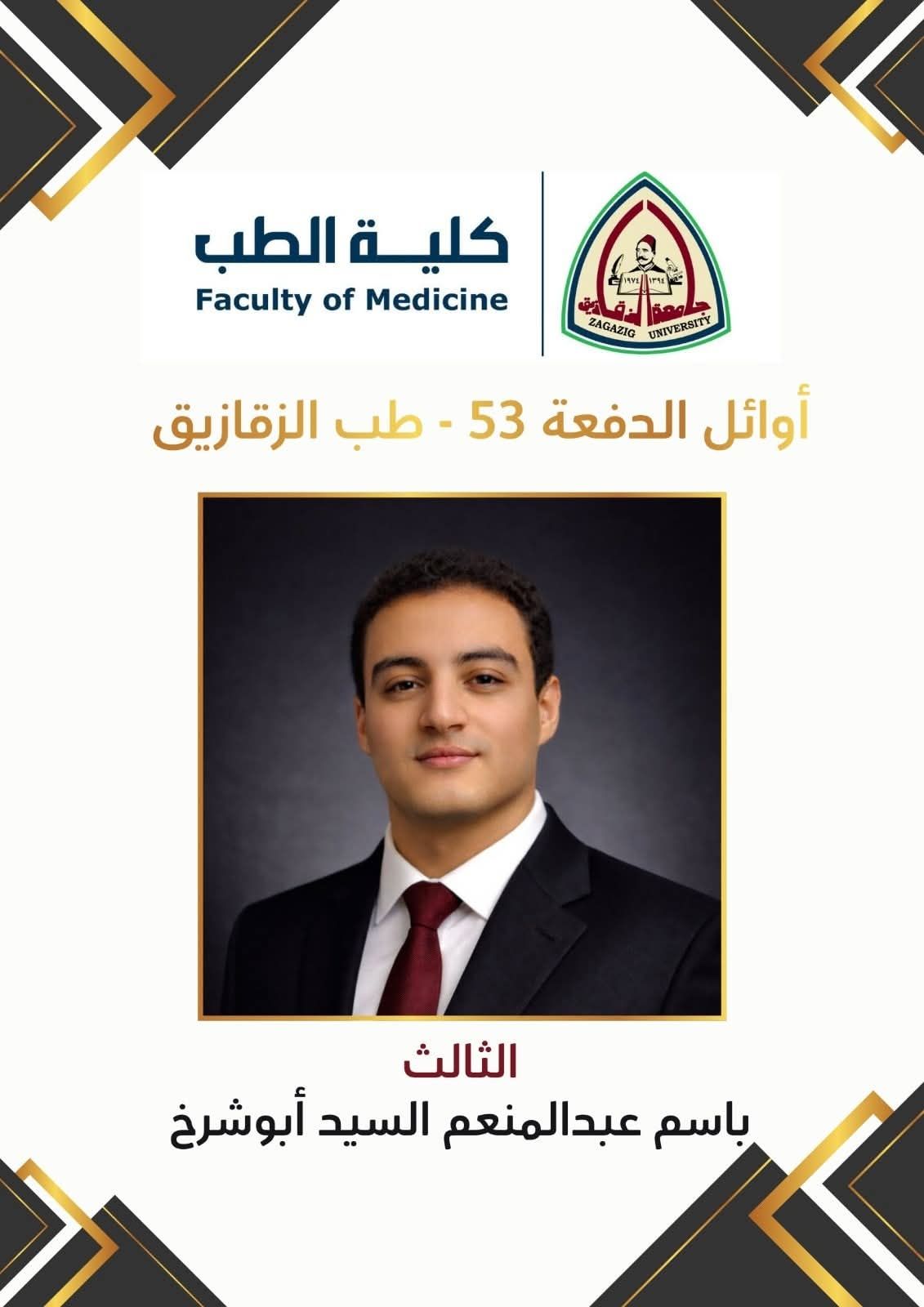 السبت، 14 فبراير 2026 09:55 صفي أجواء يسودها الفخر والاعتزاز، ينشر "اليوم السابع" أسماء وصور أوائل الدفعة الحادية والخمسين بـ كلية الطب البشري - جامعة الزقازيق، وذلك عقب تكريمهم خلال احتفالية التخرج الرسمية، تقديرا لتفوقهم العلمي وتميزهم طوال سنوات الدراسة.