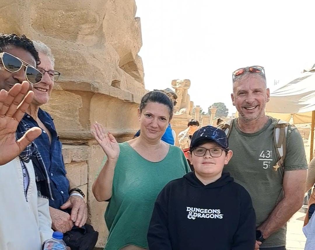 سياح من فرنسا يقدمون التهنئة من الكرنك للمصريين بقدوم شهر رمضان المبارك