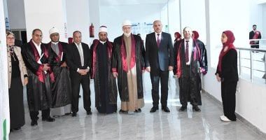 السبت، 14 فبراير 2026 05:05 ماستقبل الدكتور ناصر مندور رئيس جامعة قناة السويس، يرافقه الدكتور محمد عبد النعيم نائب رئيس الجامعة لشئون التعليم والطلاب، الدكتور محمد عبد الرحمن الضوينى وكيل الأزهر الشريف، وذلك على هامش مناقشة رسالة الماجستير فى الدراسات الإسلامية المقدمة من الباحث إيهاب حسن السعيد عبيد، إمام وخطيب ومدرس بوزارة الأوقاف، بمعهد الدراسات الأفروآسيوية للدراسات العليا.