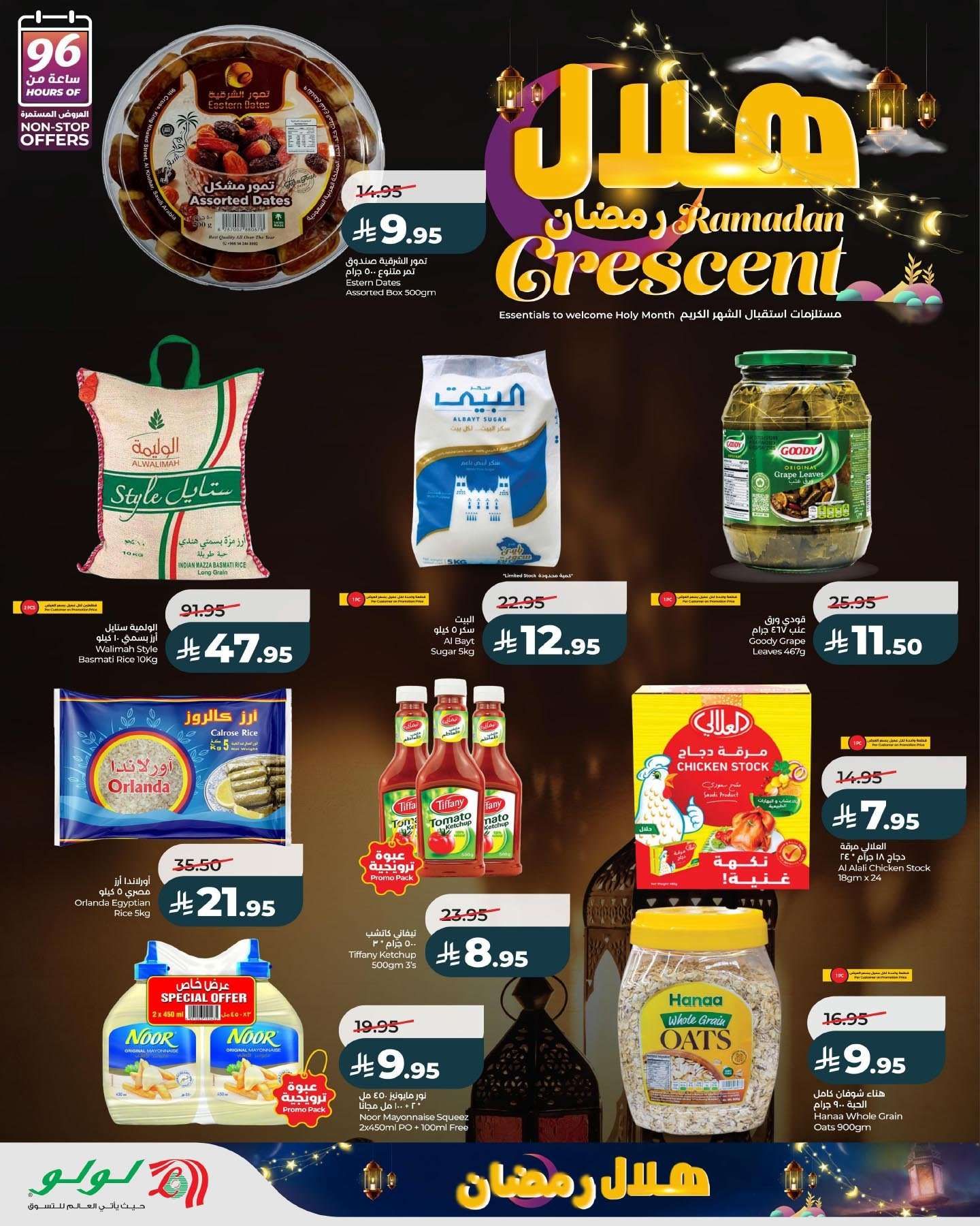 توفر ايضا عروض لولو المنطقة الشرقية في تخفيضات رمضان اللحوم والدواجن المجمدة والبيض ومنتجات الألبان والأجبان كما توفر العروض مستلزمات مائدة الإفطار من تمور وورق عنب وعجائن السمبوسة