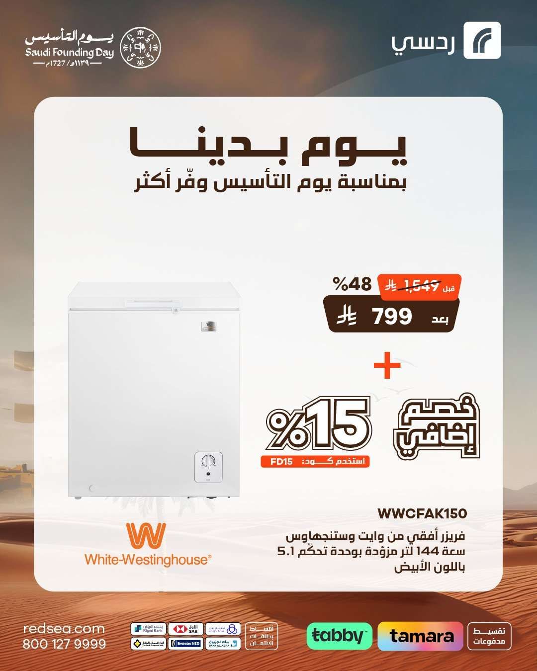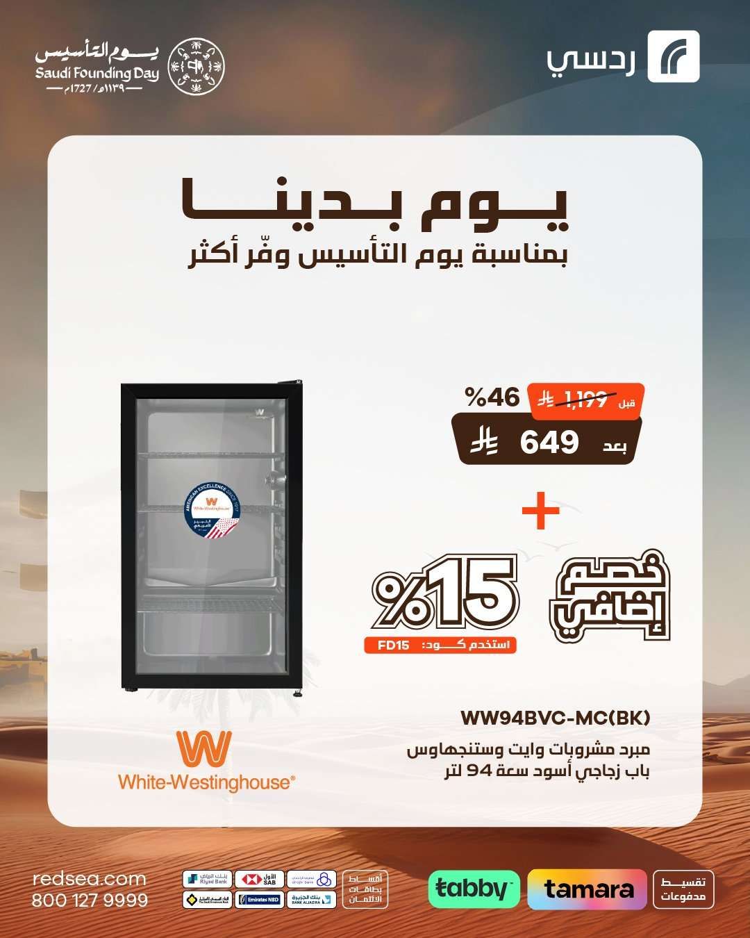 عروض ردسي للأجهزة المنزلية بخصم حتى 15% بمناسبة يوم التأسيس خصم إضافي بانتظاركم على منتجات مختارة عند استخدام كود FD15 للمزيد من التفاصيل زورزا موقعنا الإلكتروني منتجات متنوعة بأفضل الاسعار المنافسة لا تفوتوا افضل العروض الحصرية لفتره محدوده