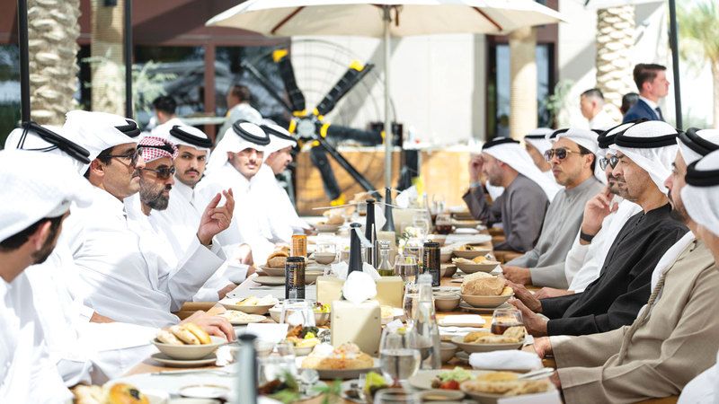 حضر اللقاء سمو الشيخ منصور بن زايد آل نهيان، نائب رئيس الدولة نائب رئيس مجلس الوزراء رئيس ديوان الرئاسة، وسمو الشيخ حمدان بن محمد بن راشد آل مكتوم، ولي عهد دبي نائب رئيس مجلس الوزراء وزير الدفاع، وسمو الشيخ طحنون بن زايد آل نهيان، نائب حاكم إمارة أبوظبي مستشار الأمن الوطني، والفريق سمو الشيخ سيف بن زايد آل نهيان، نائب رئيس مجلس الوزراء وزير الداخلية، وسمو الشيخ ذياب بن محمد بن زايد آل نهيان، نائب رئيس ديوان الرئاسة للشؤون التنموية وأسر الشهداء، وسمو الشيخ حمدان بن محمد بن زايد آل نهيان، نائب رئيس ديوان الرئاسة للشؤون الخاصة، والشيخ محمد بن حمد بن طحنون آل نهيان، مستشار صاحب السمو رئيس الدولة، وعدد من كبار المسؤولين في الدولة.