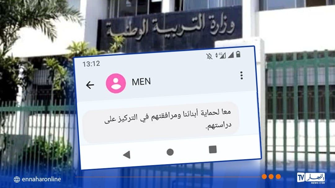 راسلت وزارة التربية الوطنية أولياء التلاميذ عبر رسائل نصية دعتهم لحماية أبنائهم ومرافقتهم في التركيز على دراستهم.