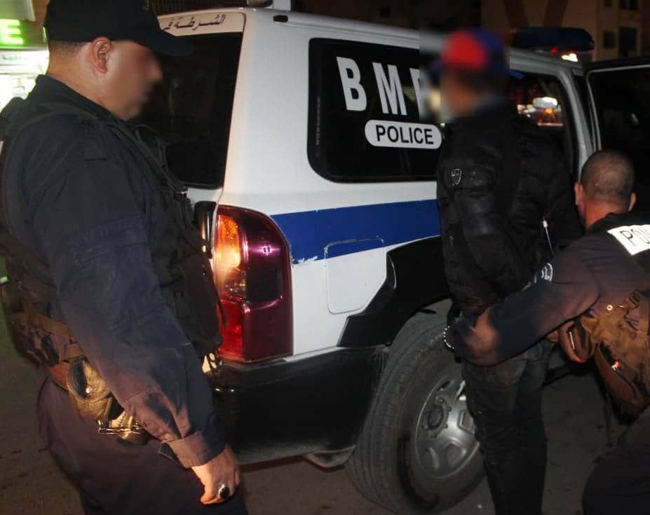 مع ضبط كميات من الكيف المعالج و المؤثرات العقلية المعدة للترويج، أسلحة بيضاء محظورة (سيوف وسكاكين) ومشروبات كحولية.