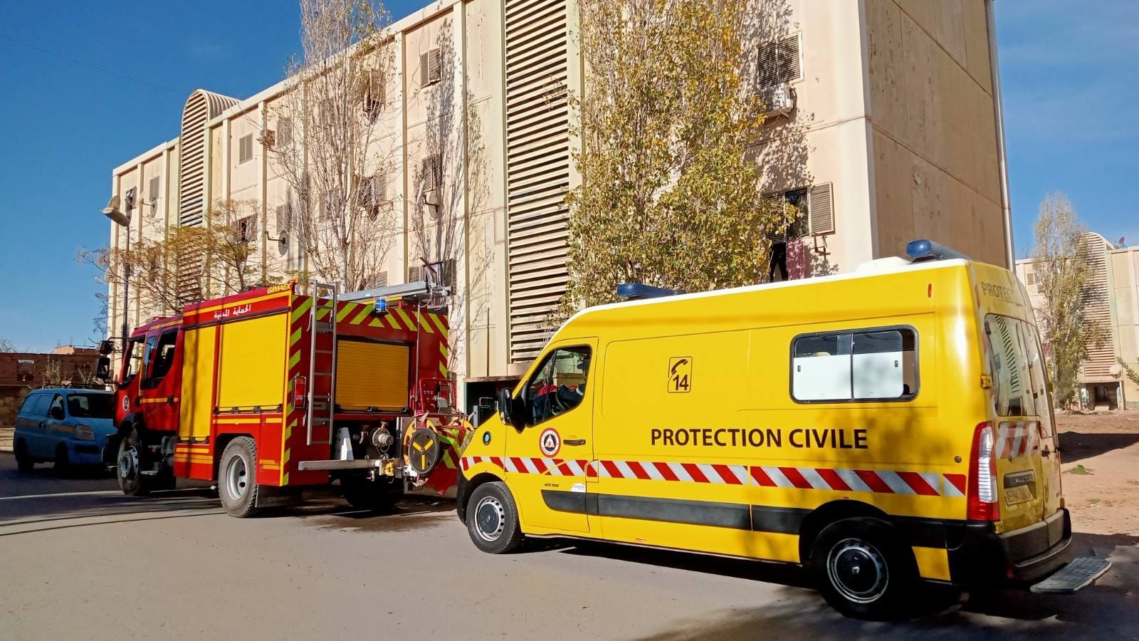 وسخّرت مصالح الحماية المدنية لهذا التدخل، شاحنتي إطفاء، وسيارة إسعاف.