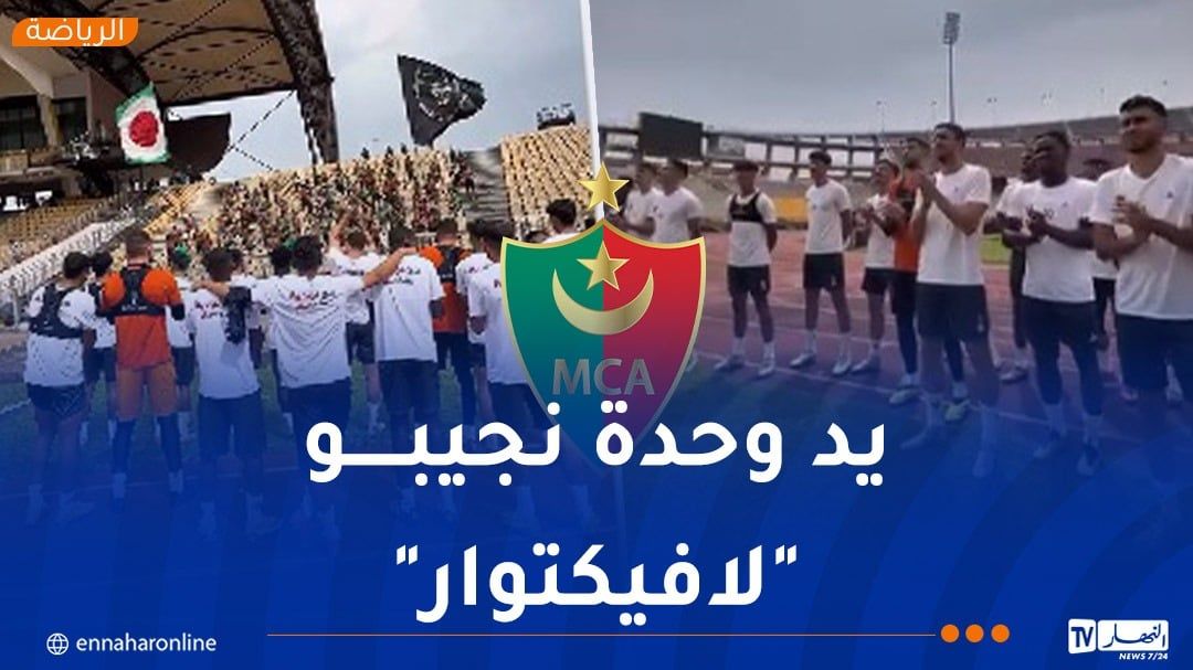 ونشرت إدارة بطل الجزائر، فيديو من ملعب “أحمدو أهيدجو” وأرفقته بتعليق، قالت فيه: “أولاد الخضرا قالوا.. يد وحدة نجيبو لافيكتوار”.