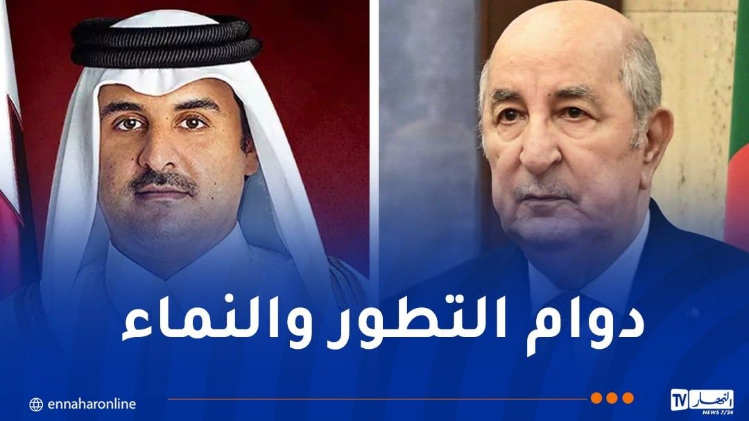 وجاء في تهنئة أمير قطر “يسرني بمناسبة ذكرى اليوم الوطني المجيد لثورة التحرير الجزائرية أن أبعث لكم ومن خلالكم”. “لشعبكم الشقيق باسم شعب دولة قطر، وباسمي شخصيا، بأطيب التهاني والتبريكات”.