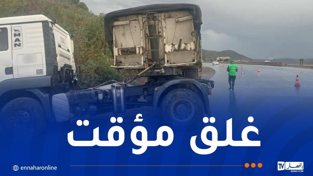 وجاء غلق الطريق من أجل إستخراج و ازاحة جرار طريقي محل حادث مادي للمرور.