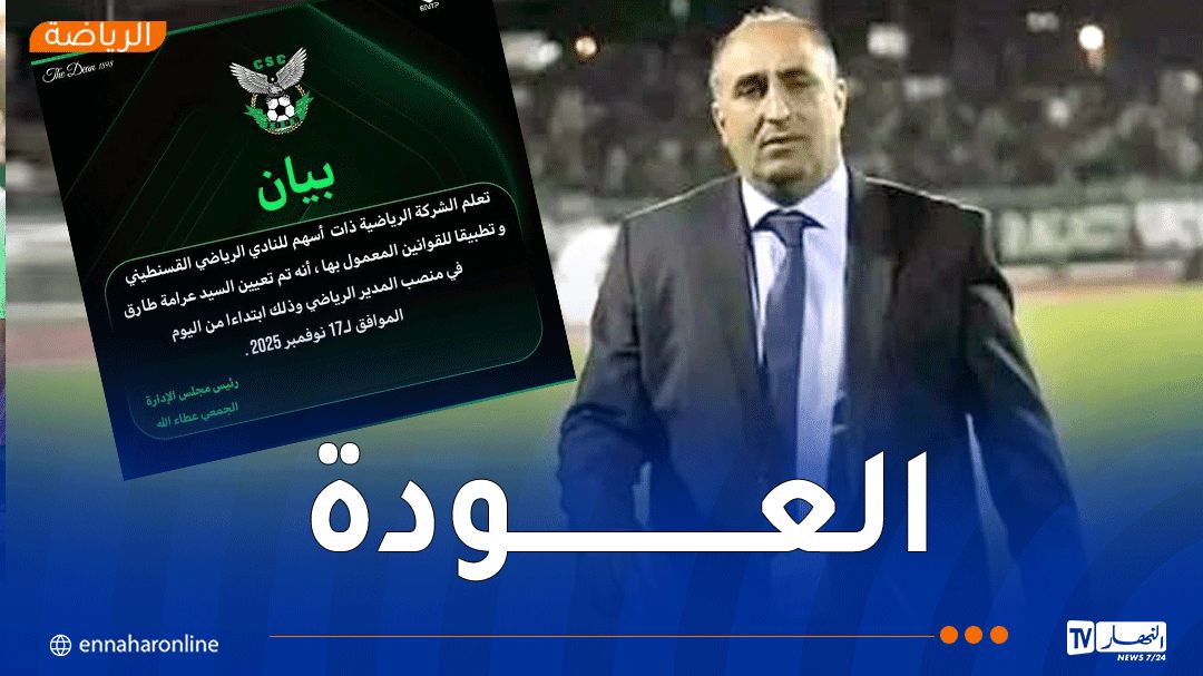 أعلنت الشركة الرياضية ذات أسهم نادي شباب قسنطينة، اليوم الاثنين، عن تعيين طارق عرامة، في منصب المدير الرياضي للنادي.