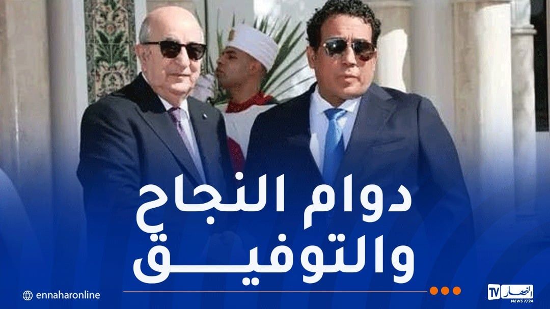 تقدم رئيس المجلس الرئاسي لدولة ليبيا الشقيقة محمد يونس المنفي، إلى رئيس الجمهورية عبد المجيد تبون بتهانيه الحارة، بمناسبة ذكرى اندلاع الثورة التحريرية.