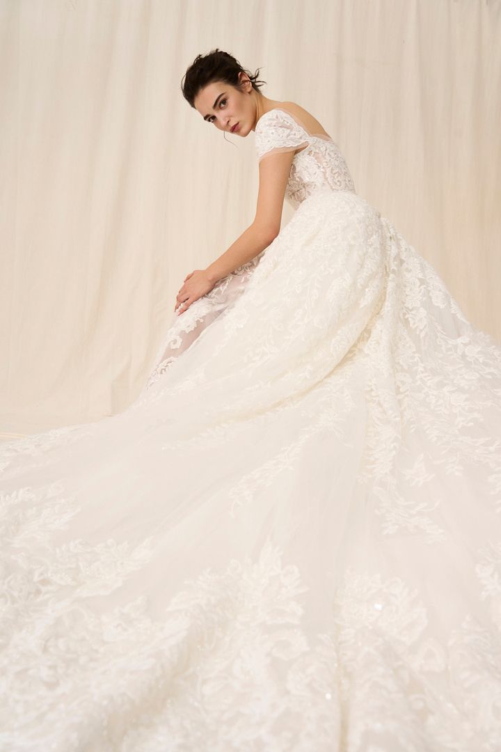 لم تكن القصات بمعزل عن هذه المعزوفة الرومانسية، فتألقت العارضات بفساتين ديكولتيه منفوشة موصولة بذيول أثيرية ومحبوكة بتطريز فائق الدقة ظهر كلوحة فنية على التوب الذي ينحت الجسم كالكورسيه، وعززت الطرحات الطويلة المتدرجة من جمال الفساتين التي نتوقع أن تتصدر لائحة تفضيلات عروس الشتاء المقبل.