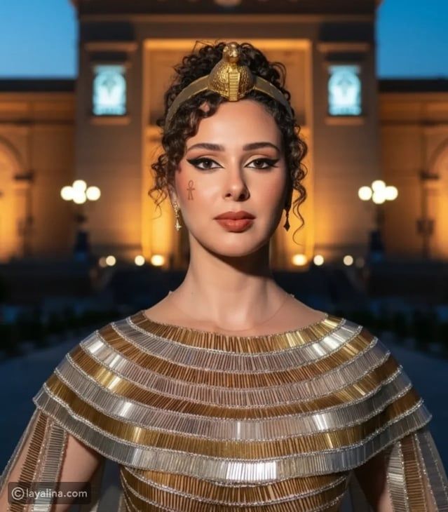 كانت إطلالة السبرانو المصرية شيرين أحمد طارق خاطفة للأنظار في حفل افتتاح المتحف المصري الكبير، خاصة أنها جاءت مستوحاة من الحضارة المصرية القديمة؛ بكورسيه بحواف مدببة على الجانبين، ومزين بالخرز الذهبي، مع تنورة مستقيمة بنفس تصميم الكورسيه وكاب بفتحة ياقة مستديرة. ونسقت معه أقراط صغيرة مع تسريحة شعر مرفوعة وخصلات منسدلة مموجة.