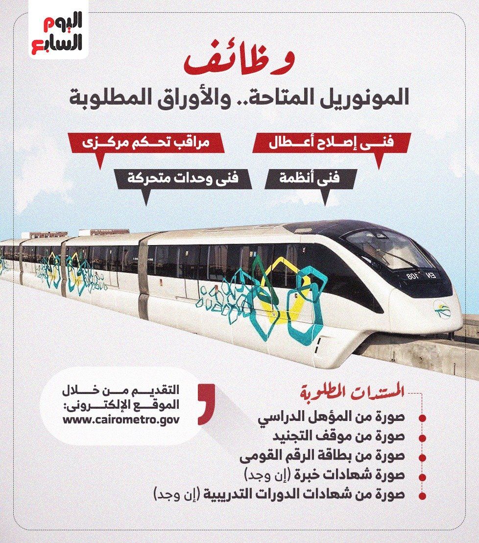 السبت، 30 أغسطس 2025 07:00 صينشر اليوم السابع الوظائف والتخصصات المتاحة بمشروع المونوريل والأوراق المطلوبة، وفق ما أعلنته الشركة المصرية لإدارة وتشغيل المترو لتشغيل وصيانة قطار المونوريل.
