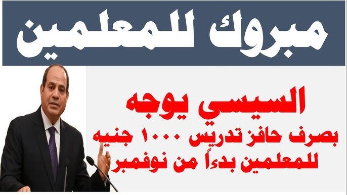 وجه الرئيس السيسي بصرف حافز للمعلمين بقيمة 1000 جنيه شهريًا، يبدأ تطبيقه اعتبارًا من نوفمبر 2025، ضمن حزمة إجراءات تهدف إلى تحسين الوضع الاقتصادي للمعلمين، وضمان استقرار العملية التعليمية ورفع كفاءة المعلمين، مع تعزيز المنظومة التعليمية وتوفير بيئة مناسبة لتحسين الأداء والالتزام بالمعايير التعليمية الحديثة.