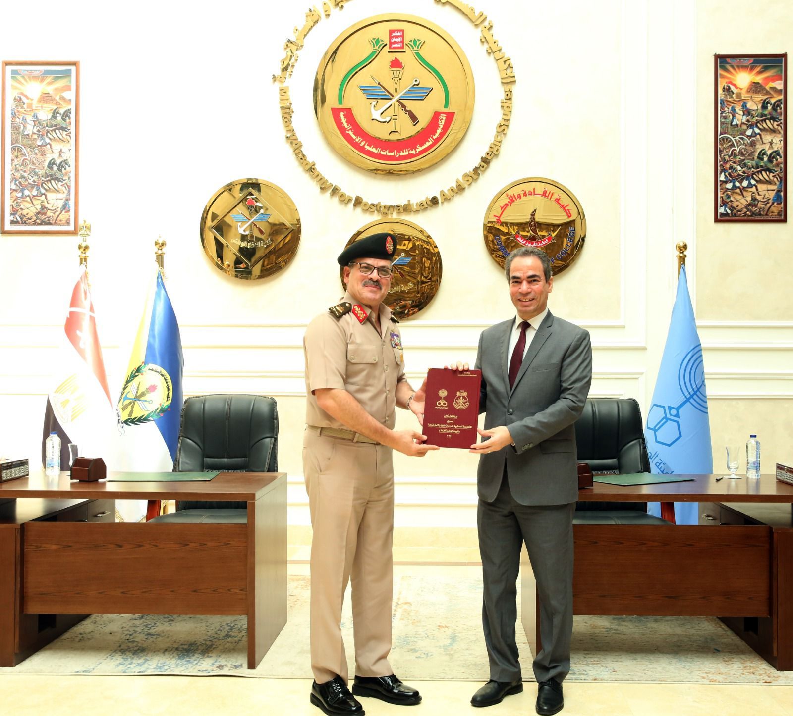 وفى سياق متصل، وقع اللواء أ ح عاطف عبد الرؤوف محمود مدير الأكاديمية العسكرية للدراسات العليا والإستراتيجية والأستاذ أحمد المسلمانى رئيس الهيئة الوطنية للإعلام بروتوكول تعاون لتحقيق الإستفادة لكلا الجانبين فى شتى المجالات المهنية والأكاديمية .