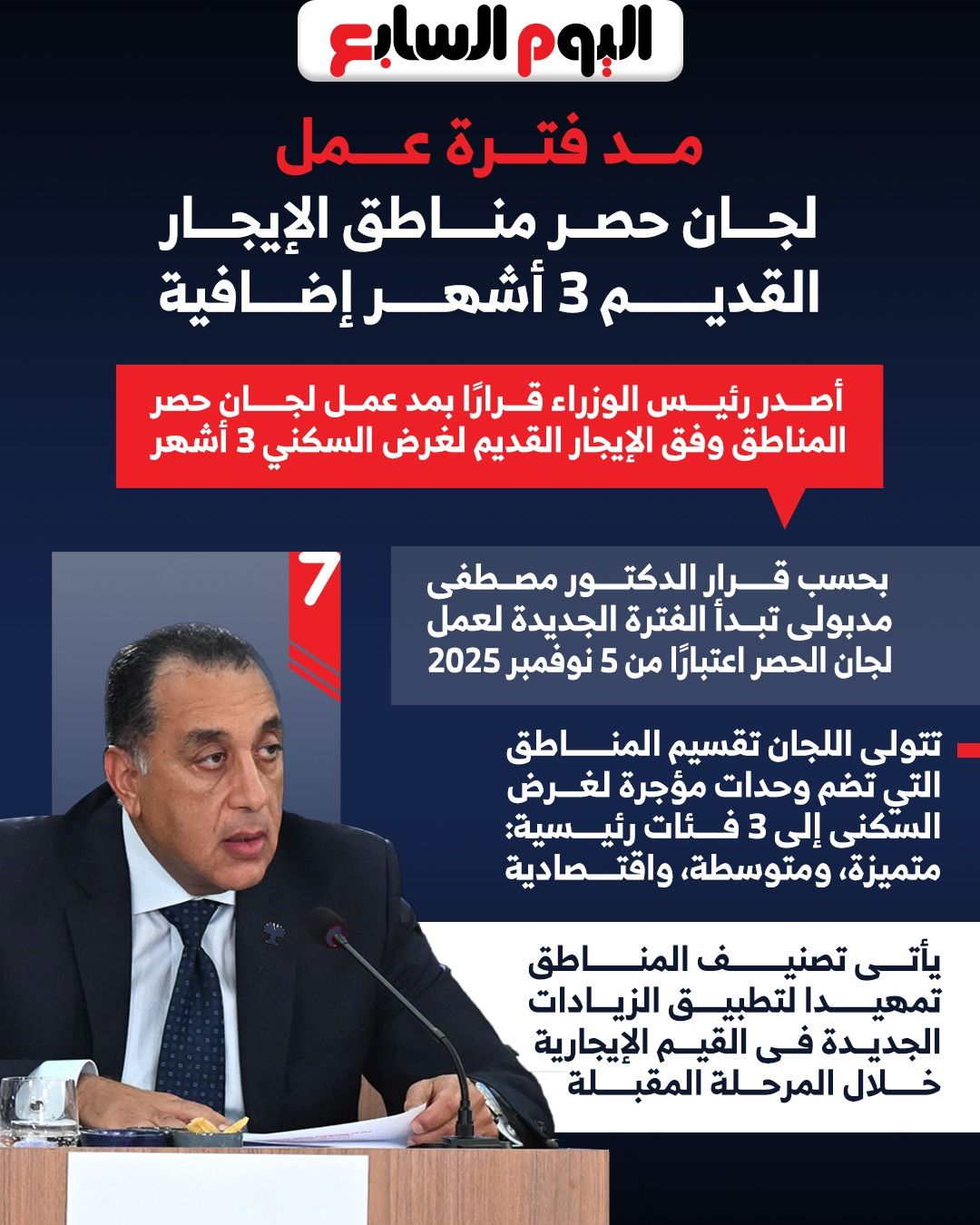 أصدر الدكتور مصطفى مدبولي، رئيس الوزراء، قرارا بمد عمل لجان الحصر بالمناطق التي بها أماكن مؤجرة لغرض السكني بقانون تنظيم العلاقة بين المؤجر والمستأجر، لمدة ثلاثة أشهر تبدأ من 5 نوفمبر 2025.