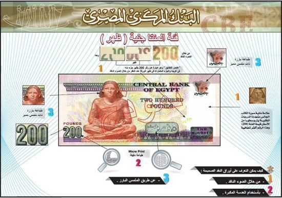 علامات تأمين ورقة البنكنوت 200 جنيه