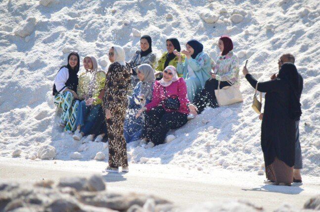 إحدى النقاط البارزة خلال الزيارة كانت “جبال الملح” بشركة النصر للملاحات، حيث استقطبت هذه المعلم السياحي العديد من الزوار بفضل مناظرها الخلابة، وتمكنت من محاكاة أجواء جبال الثلج الأوروبية، مما جذب انتباه رواد مواقع التواصل الاجتماعي، وهذه الأجواء حولتها إلى مقصد جديد لمحبي التصوير.