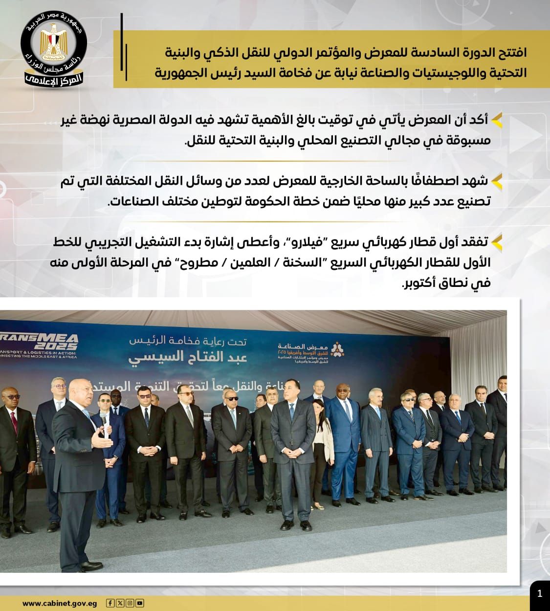 - نيابة عن السيد الرئيس السيسى.. افتتح رئيس الوزراء المعرض والمؤتمر الدولي للنقل الذكي واللوجستيات والصناعة