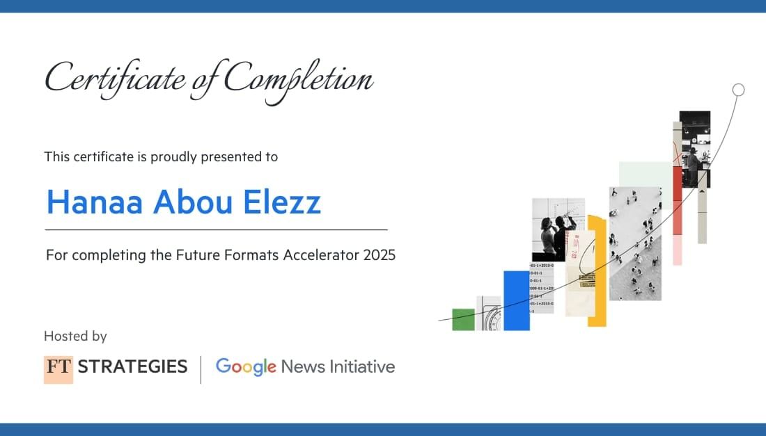 حصدت جريدة اليوم السابع، إلى جانب عدد من صحفييها، اعتمادًا دوليًا رفيع المستوى فى مجال الذكاء الاصطناعي، وذلك عقب استكمالها بنجاح برنامج Future Formats Accelerator 2025 (مسرّع الأشكال المستقبلية 2025) المقدم من مؤسسة فايننشال تايمز بالتعاون مع مبادرة جوجل للأخبار، والهادف إلى تسريع تبنّى تقنيات الذكاء الاصطناعى داخل المؤسسات الإعلامية، ويعزز هذا الإنجاز مكانة «اليوم السابع» كإحدى أبرز المؤسسات الإعلامية فى المنطقة التى تقود مسار التحول الرقمى وتطوير مستقبل المحتوى الإخباري.