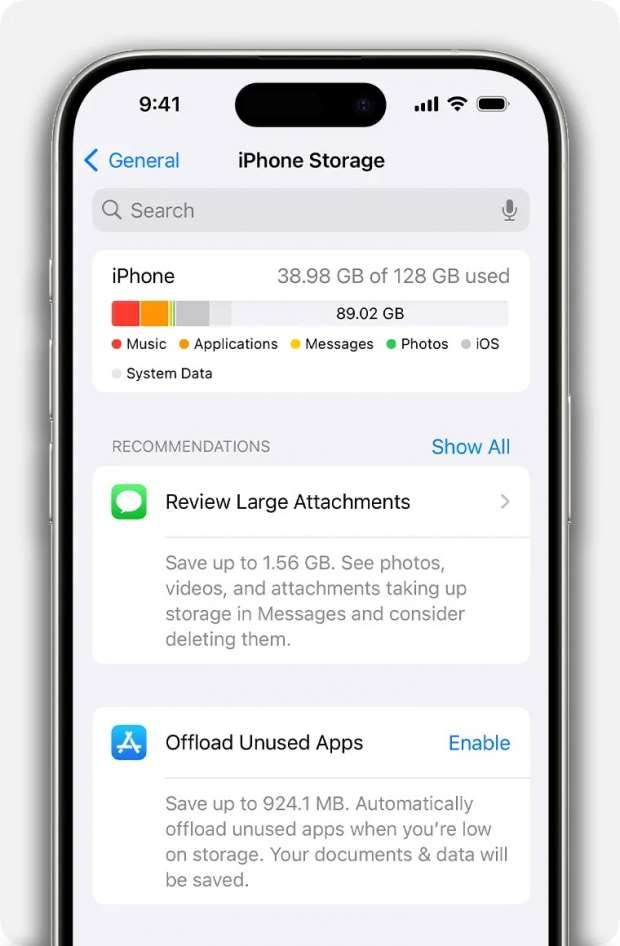 مساحة التخزين الخاصة بك، هي المكان الذي تلجأ إليه، في حالة شعورك بالخوف لوجود عدد كبير من الصور، وهو أيضاً مكان مميز لمحققي iPhone الذين يتطلعون إلى اكتشاف المتطفلين، عن طريق الوصول إلى «الإعدادات، ثم اختيار عام، وبعدها تخزين iPhone، ثم انتقل لأسفل إلى القسم الذي تدرج فيه تطبيقاتك»، ويجب عليك ضبط الفلتر الموجود أعلى القائمة على «الحجم» افتراضيًا، وقم بتغييره إلى «تاريخ الاستخدام الأخير».