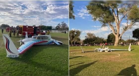 ووقع الحادث في حديقة هارتويل، حيث تحطمت الطائرة الصغيرة بعد أن تعطل نظام هبوطها، وفق بيان إدارة إطفاء لونغ بيتش التي أضافت أن هيكل الطائرة ظل سليماً.