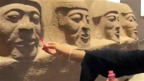 القصة الكاملة.. أحمر شفاه على تمثال فرعوني