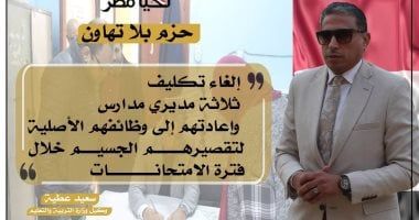 -إلغاء تكليف ثلاثة مديري مدارس وإعادتهم إلى وظائفهم الأصلية لتقصيرهم الجسيم خلال فترة الامتحانات.