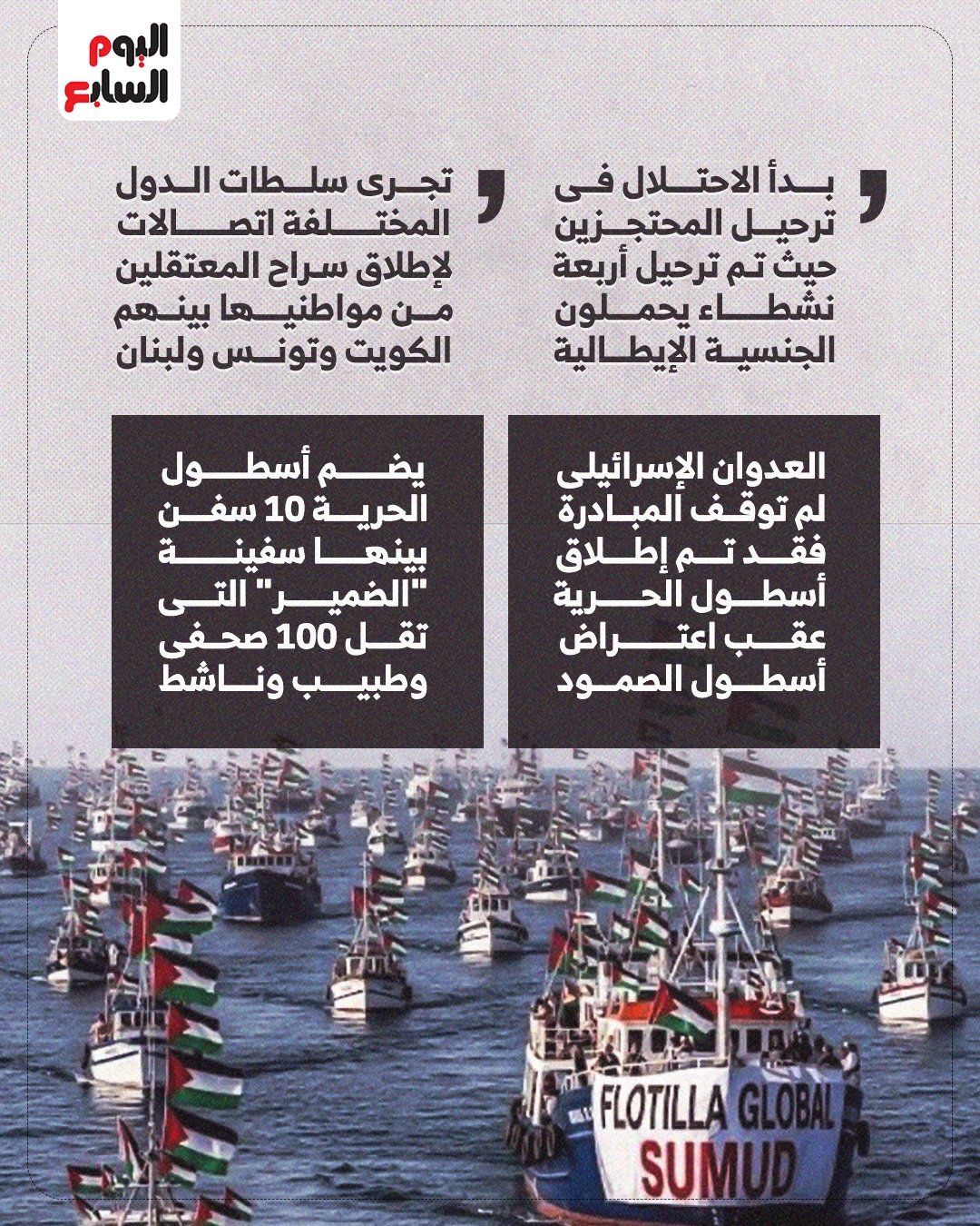 وبحسب مصادر دبلوماسية، بدأ الاحتلال في ترحيل المحتجزين، حيث تم بالفعل ترحيل أربعة نشطاء إيطاليين، فيما تُجري حكومات دول أخرى – من بينها الكويت وتونس ولبنان – اتصالات مكثفة للإفراج عن رعاياها المعتقلين.