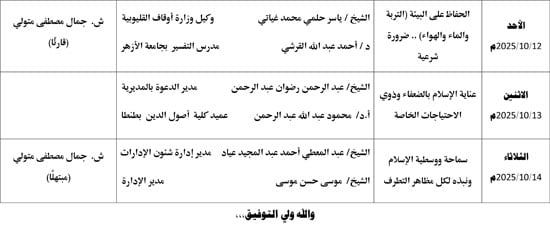 ويأتي ذلك في إطار دور وزارة الأوقاف العلمي والدعوي والتثقيفي الهادف إلى تحقيق مقاصد الشريعة وتقديم خطاب ديني رشيد يسهم في بناء الوعي الصحيح، وفي تنفيذ محاور الخطة الدعوية للوزارة، وخاصة محور مواجهة التطرف ومحاربة جميع صور الانحراف الفكري، ومحور مواجهة مظاهر التطرف اللاديني المتمثلة في تراجع القيم والأخلاق، فضلًا عن محور استعادة وبناء الشخصية المصرية الوطنية من منطلق ديني قويم.